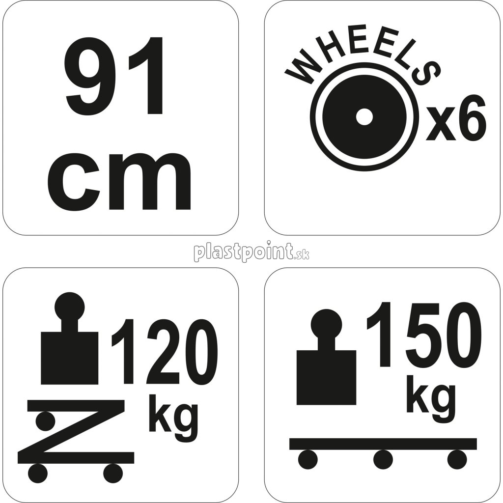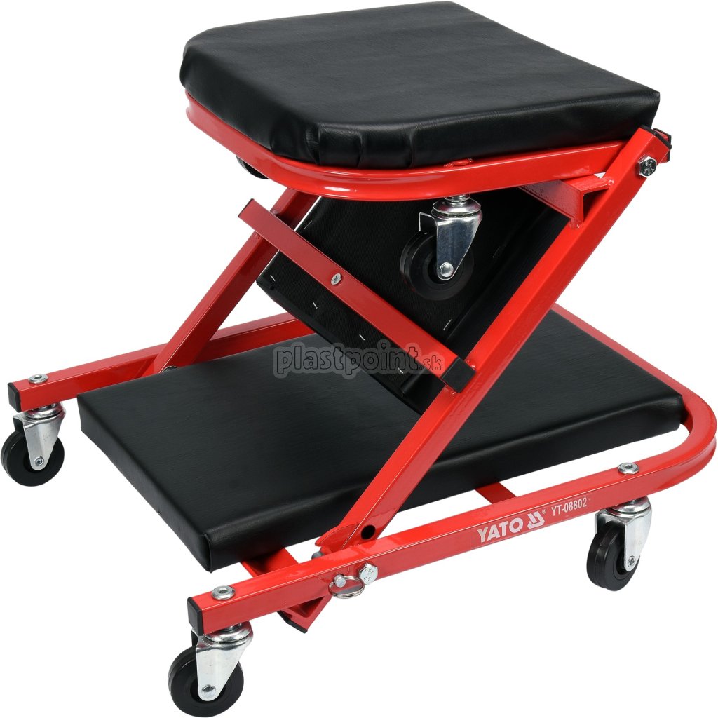 Lehátko je vybavené 6 otočnými kolieskami na ložiskách, pre uľahčenú manipuláciu. Ťahom je možné lehátko premeniť na praktickú a pohodlnú dielenskú stoličku s nosnosťou 120 kg.