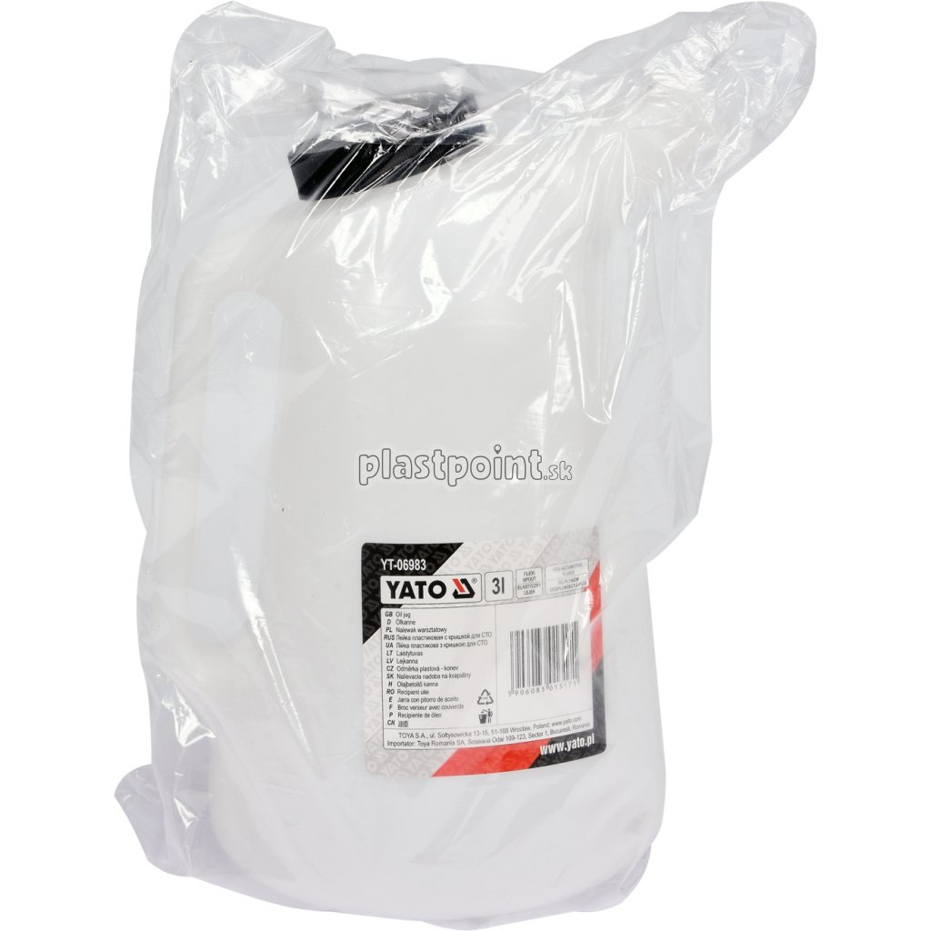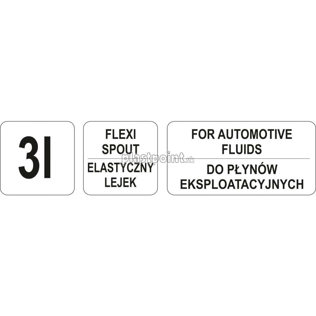Zhotovenie z odolného PE materiálu odolného voči technickým kvapalinám, opatrená skrutkovacím vekom a ohybným lievikom.