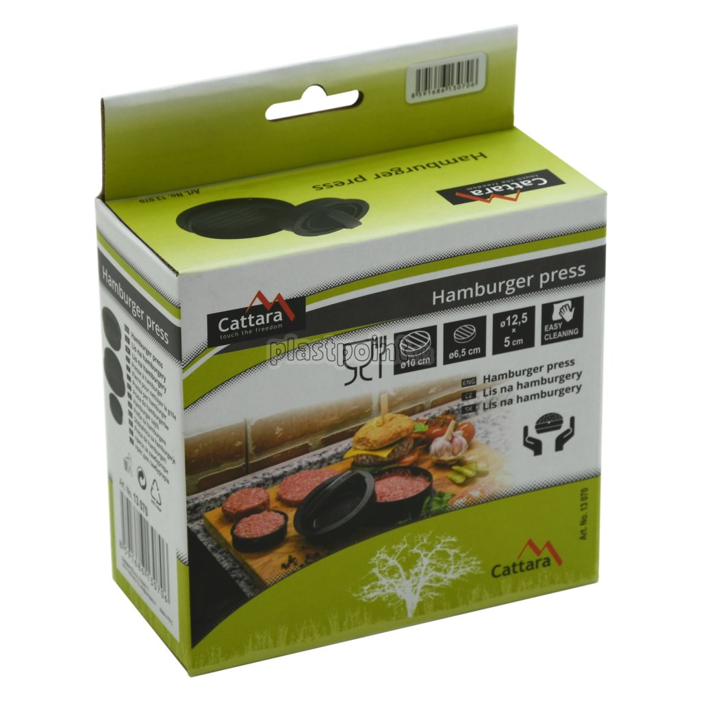 Forma sa skladá z niekoľkých dielov, s pomocou ktorej je možné vytvoriť mäsa s priemermi 10 alebo 6,5 cm s ľubovoľným výsledným profilom hamburgera.