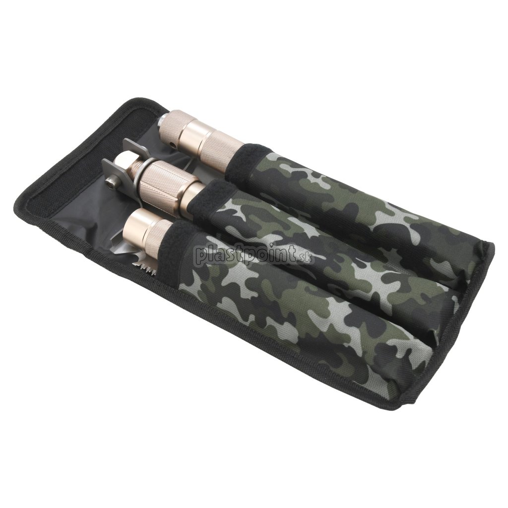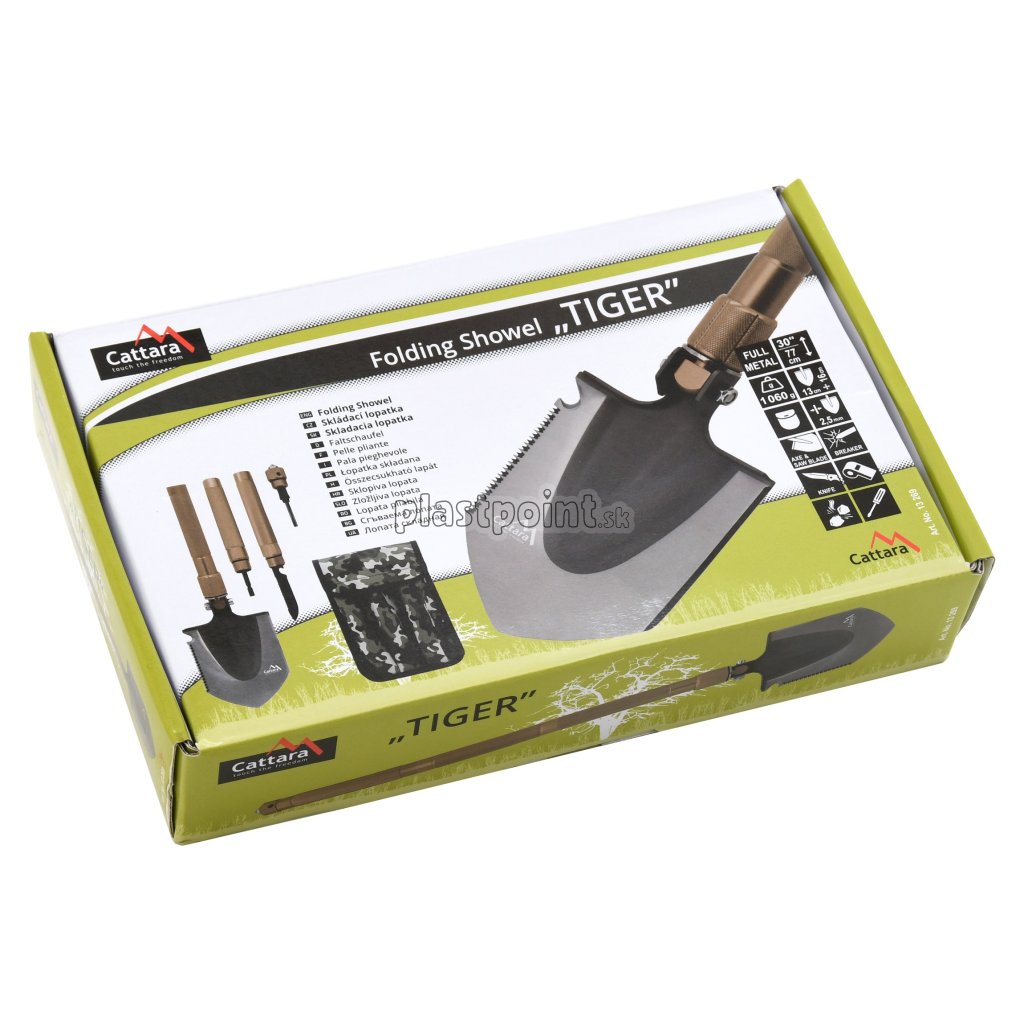 Jedná sa o lopatku, ktorá má v zloženom stave v balení rozmery 15 x 24 x 5 cm. Textilné puzdro s maskáčovým dizajnom je možné pripevniť za opasok.