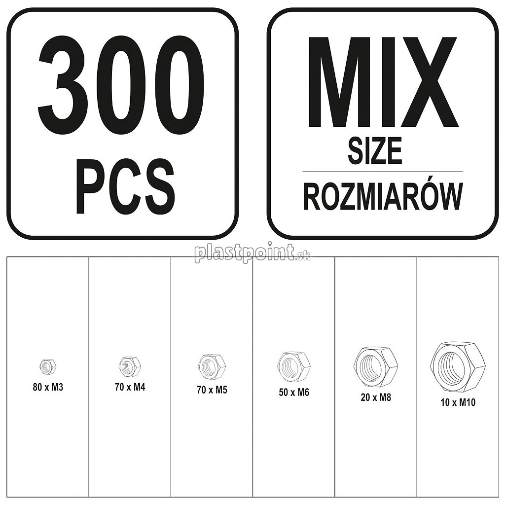 Sada 300 ks kvalitných matíc s metrickým M3 - M10 závitom.