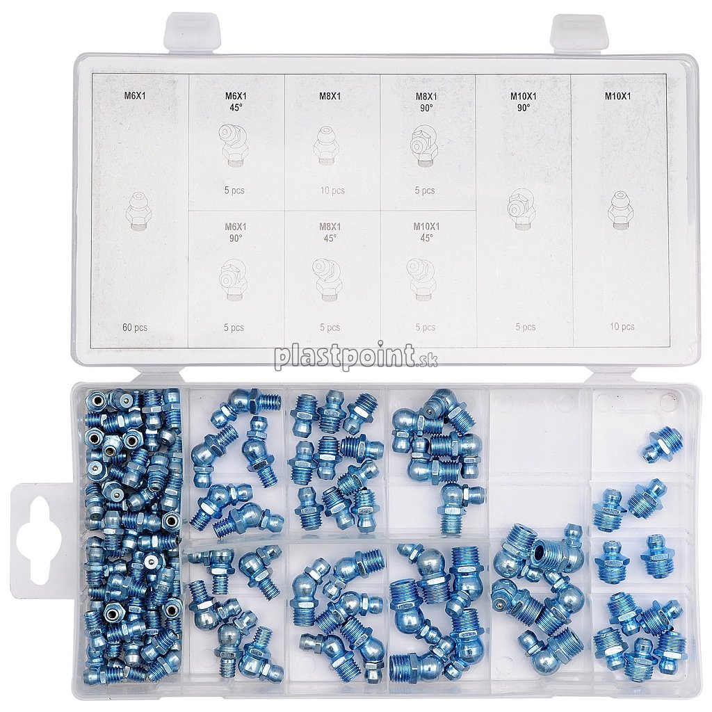 Sada obsahuje 110 kusov mazacích hlavíc s metrickým závitom, nenahraditeľných v garáži, poľnohospodárstve alebo priemysle.