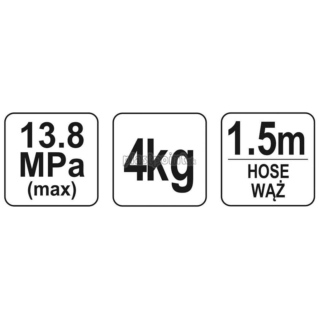 Hadica dĺžky 1,5 ma výtlačný tlak 13,8 MPa.