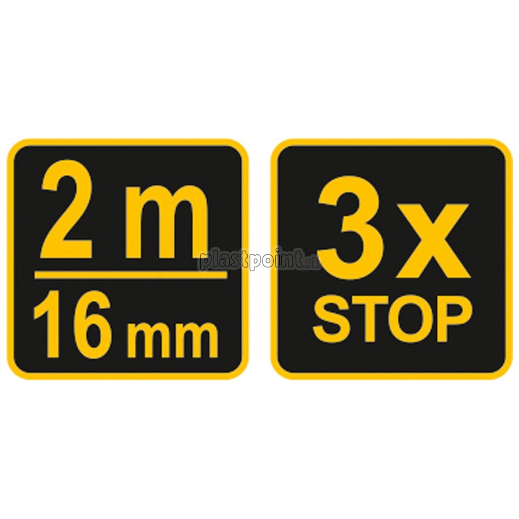 Meter zvinovací 2 m x 16 mm žlto - čierny