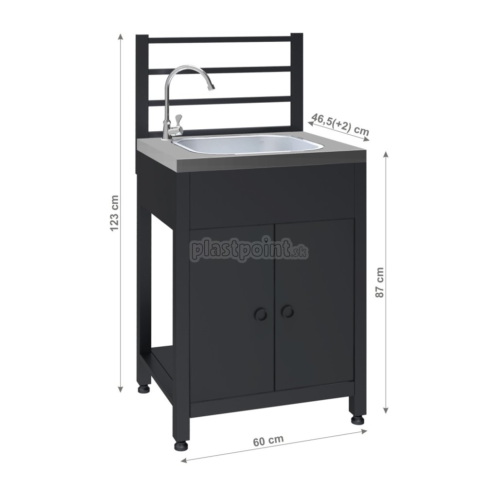 Modul je konštruovaný z ocele s kvalitnou povrchovou úpravou čiernej farby. Pracovná časť je tvorená z leštenej nerezovej ocele a jej vrchná časť je umiestnená vo výške 87 cm. Celkové rozmery 60 x 46,5(+2) x 123 cm.