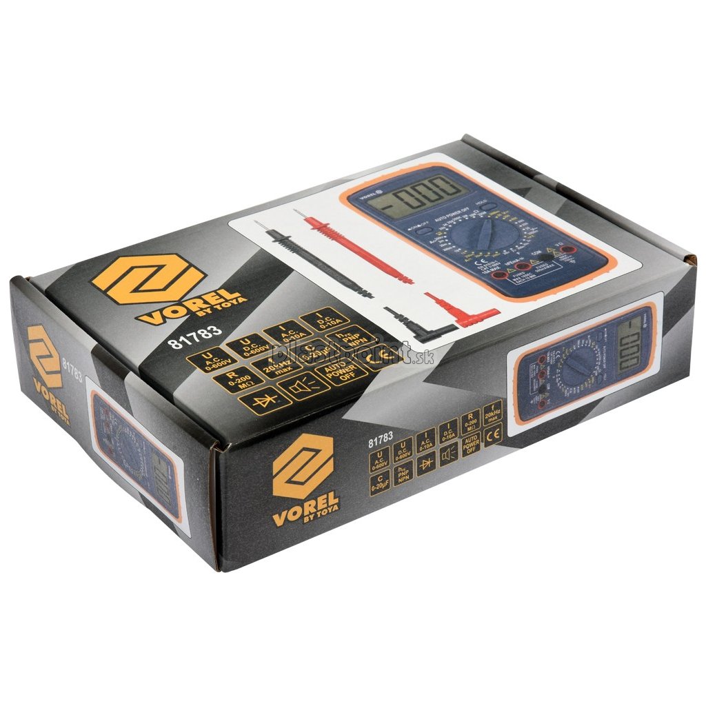 Namerané hodnoty sa zobrazujú na prehľadnom LCD displeji odolného, plastového tela prístroja. Telo je navyše umiestnené v odnímacom silikónovom obale, ktorý zaisťuje čiastočnú ochranu pred vlhkosťou, nečistotami av neposlednom rade chráni prístroj pred vibráciami. K meraču sú priložené kvalitné káble s meracími hrotmi.