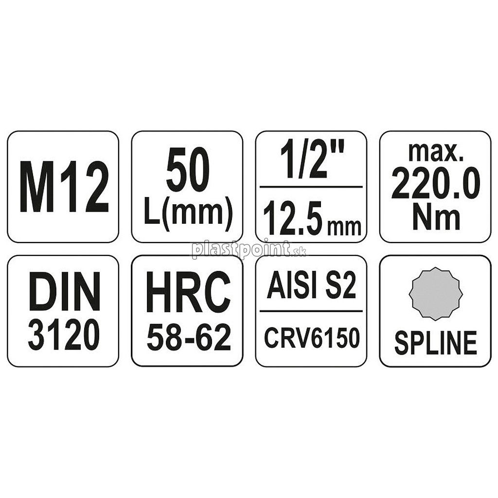 Profesionálny šesťhranný bit Viaczubý (SPLINE) pre 1/2" račňu.
