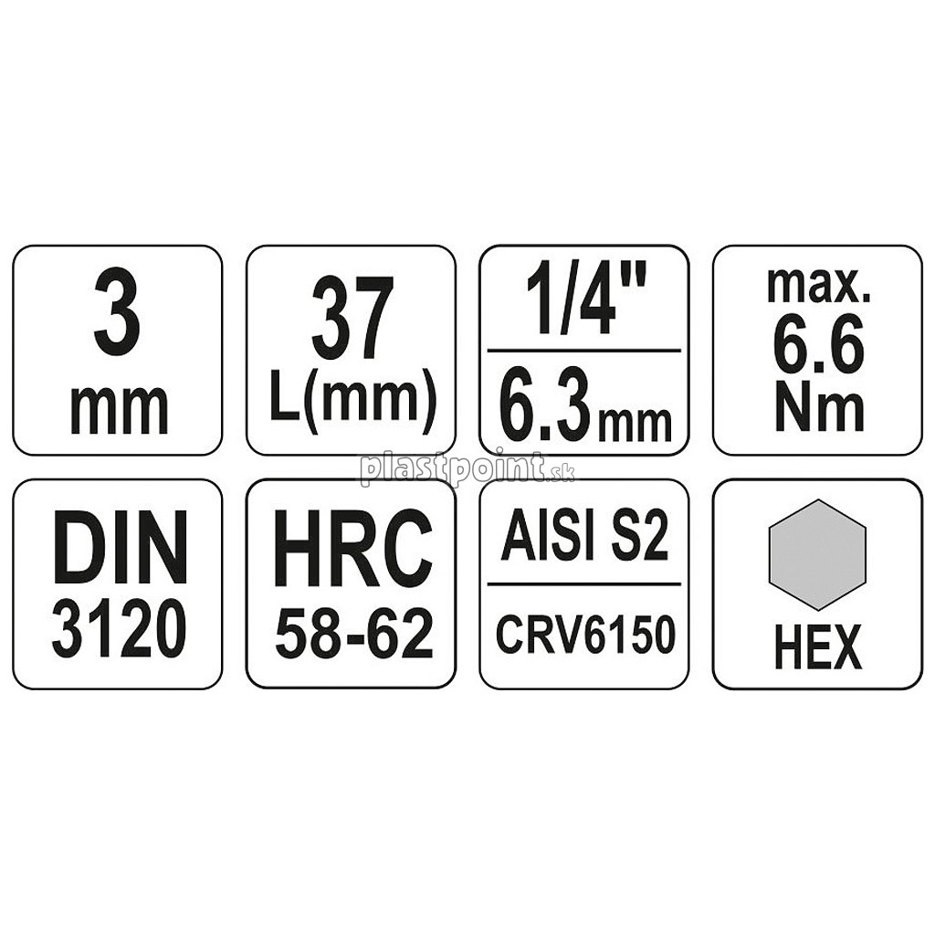 Profesionálny šesťhranný bit Imbus (HEX) pre 1/4' račňu.