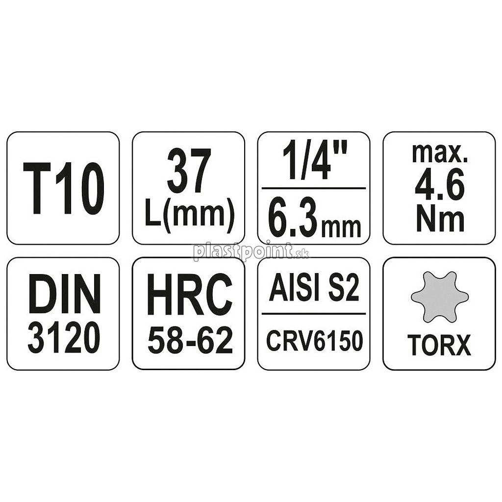 Profesionálny šesťhranný bit Torx pre 1/4' račňu.