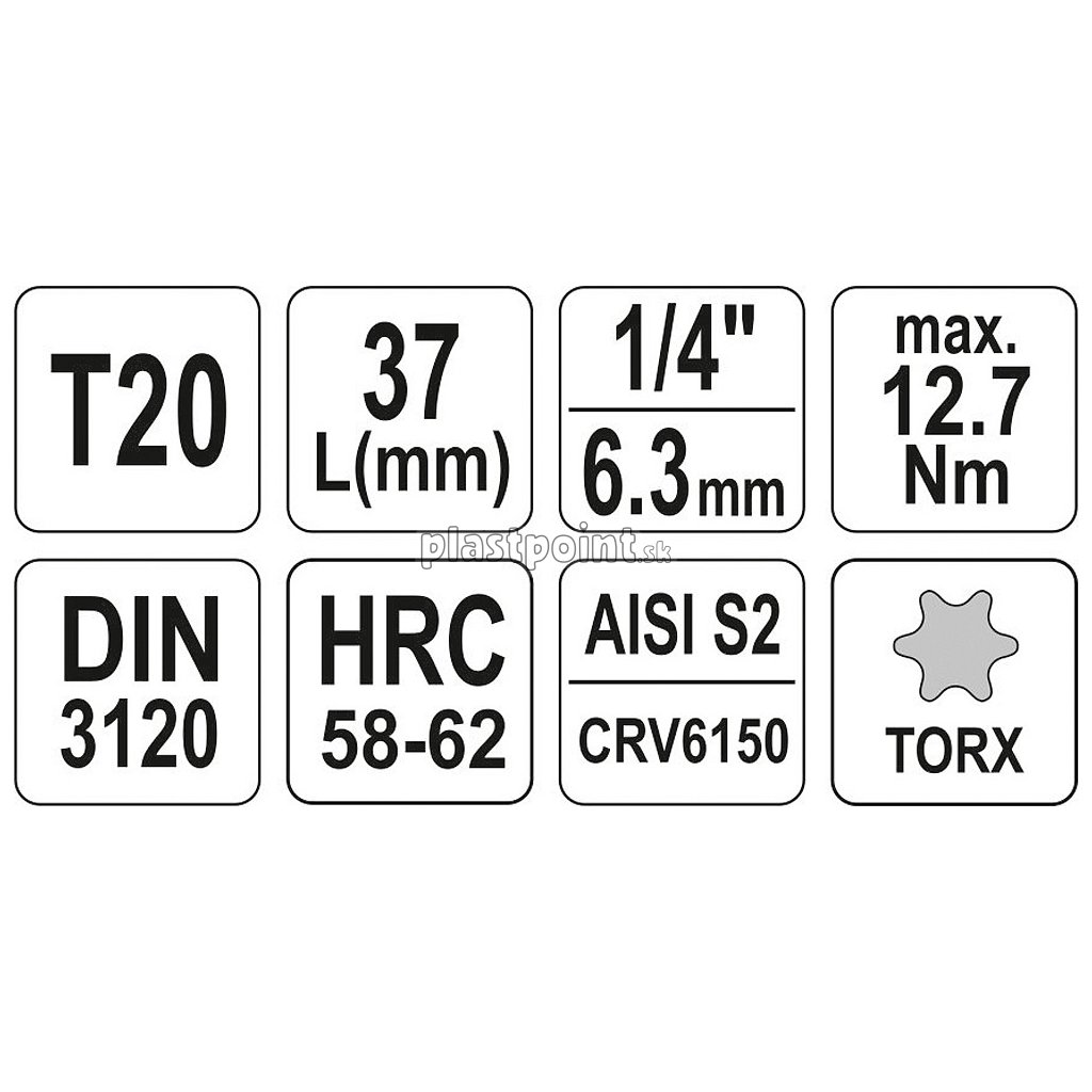 Profesionálny šesťhranný bit Torx pre 1/4' račňu.