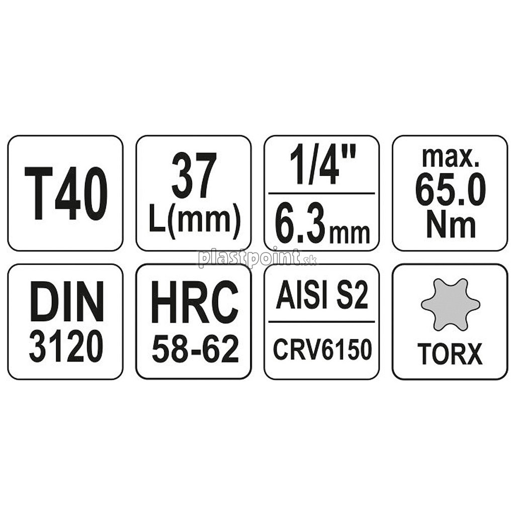 Profesionálny šesťhranný bit Torx pre 1/4' račňu.
