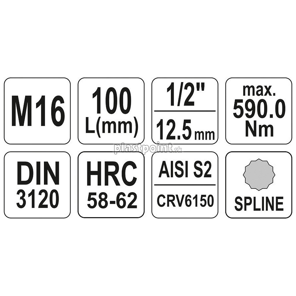 Profesionálny šesťhranný bit Viaczubý (SPLINE) pre 1/2" račňu.