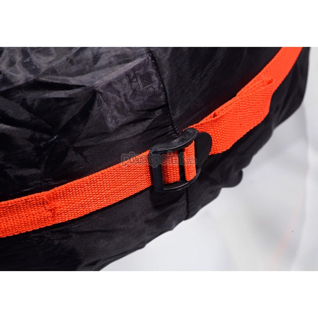 Návlek sa nasunie na pneumatiku a pomocou popruhu so sponou sa dôkladne upne po obvode. Po stranách sú umiestnené gumové upínače pre dokonalé obopnutie pneumatík. R16