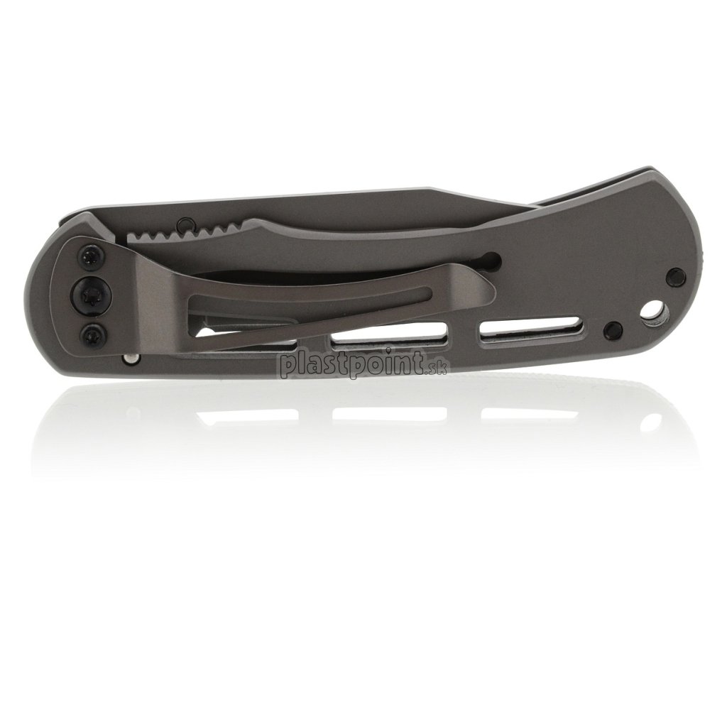 Vďaka výstupku na boku čepele, je možné otvorenie noža jednou rukou. Nôž je vybavený poistkou, ktorá sa ovláda bočným posuvom palca v spodnej časti rukoväte. titánom.