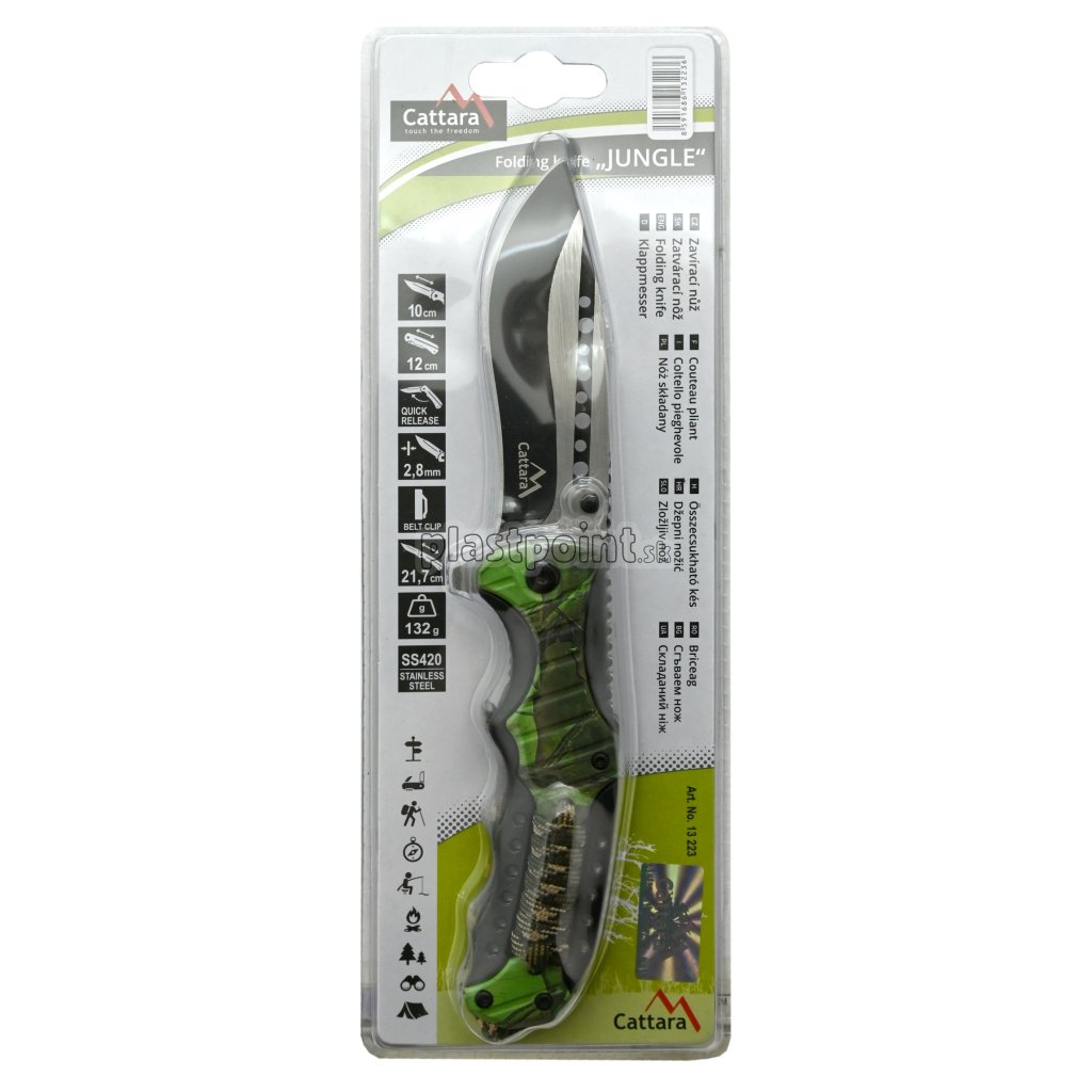 Nôž s nízkou hmotnosťou s potlačou kamufláže jungle. Nôž je užitočný pomocník pre camping, rybárčenie a ďalšie outdoor využitie. Čepeľ noža je zhotovená z nožiarskej ocele SS420 dĺžky 10 cm o sile 2,8 mm. Materiál dosahuje vysokú tvrdosť a je obzvlášť vhodný do nepriaznivého prostredia, kde exceluje svojou nehrdzavejúcou odolnosťou.
