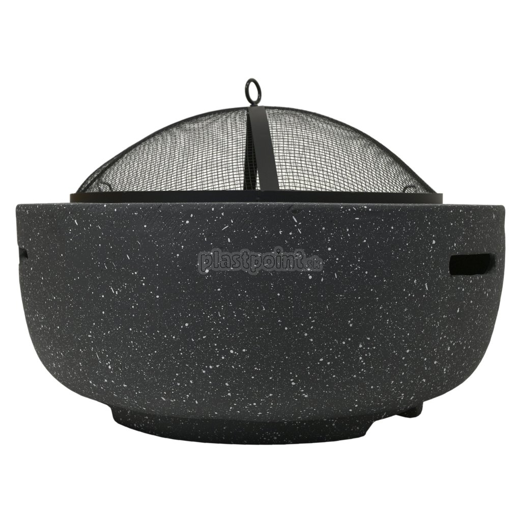 Špeciálne tvarovaný poklop s pletivom poslúži ako ochrana pred iskrami, čo výrazne zvyšuje bezpečnosť a pohodlie. K ohnisku je navyše priložený aj praktický pohrabáč na uhlíky. Vďaka robustnému telu z umelého kameňa, je ohnisko veľmi stabilné a jeho výnimočný vzhľad skrášli kadejakú záhradu.