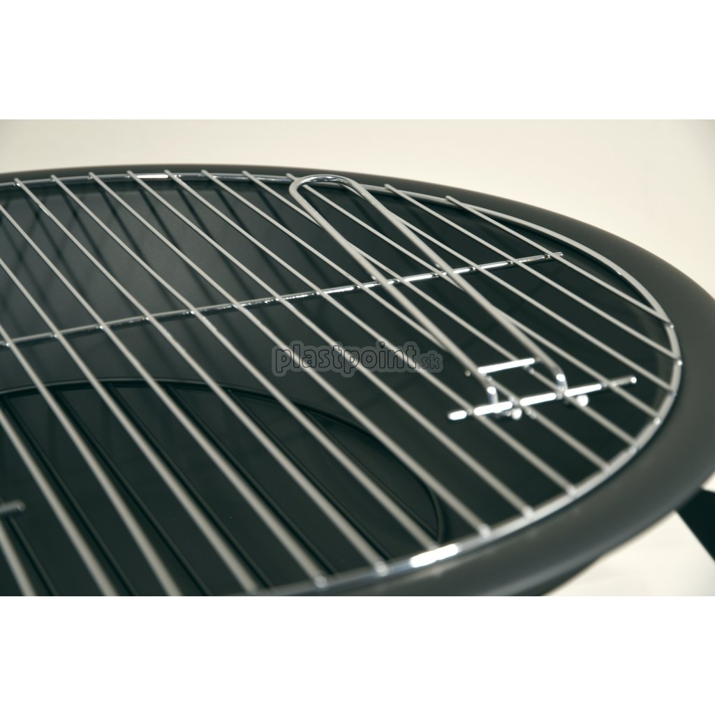 Špeciálne tvarovaný poklop s pletivom poslúži ako ochrana pred iskrami, čo výrazne zvyšuje bezpečnosť a pohodlie. Priložený je aj kovový pohrabáč s drevenou rukoväťou, ktorý je možné použiť ako na urovnanie ohňa, tak aj na ľahké zloženie poklopu.