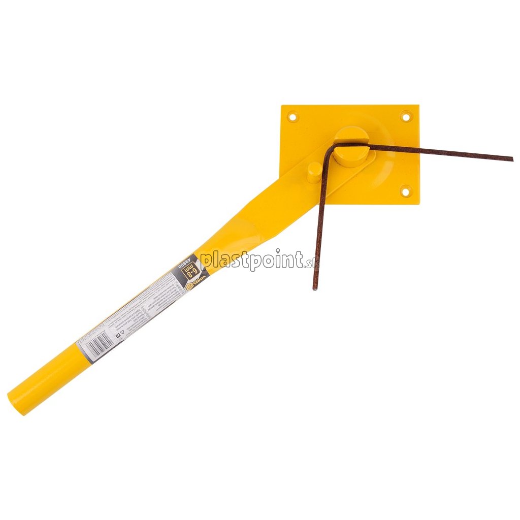 Ohýbačka je vyrobená z vysoko pevnej ocele a je určená na ohýbanie strmienkov a výstužných tyčí (hladkých a rebrovaných). Odolná základňa a rameno s priemerom 32 mm umožňujú bezproblémové ohýbanie tyčí 6 až 8 mm.
