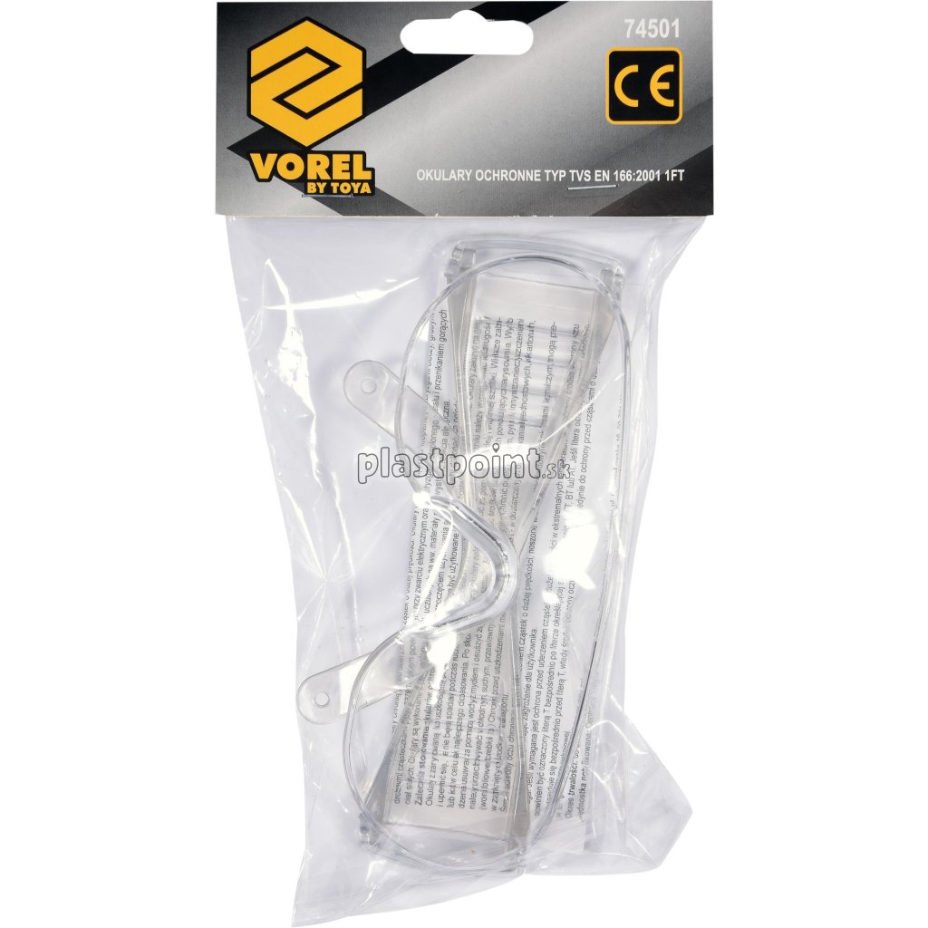 Ochranné okuliare z polykarbonátu, so širokými ramienkami poskytujúcimi ochranu aj z boku.