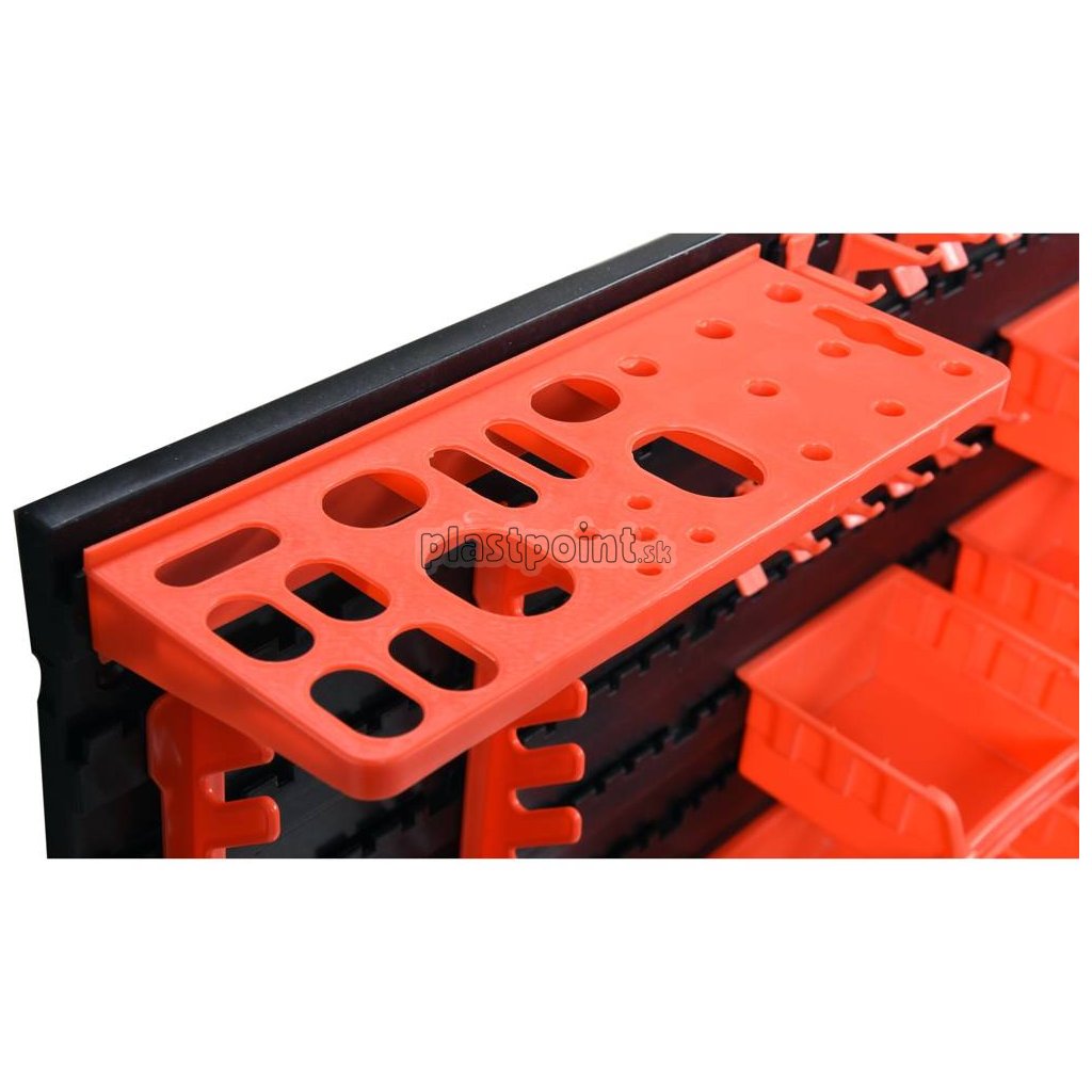 Nástenný organizér pre pohodlné uloženie náradia a iných drobných predmetov. Udržuje poriadok a systém v dielni či garáži.