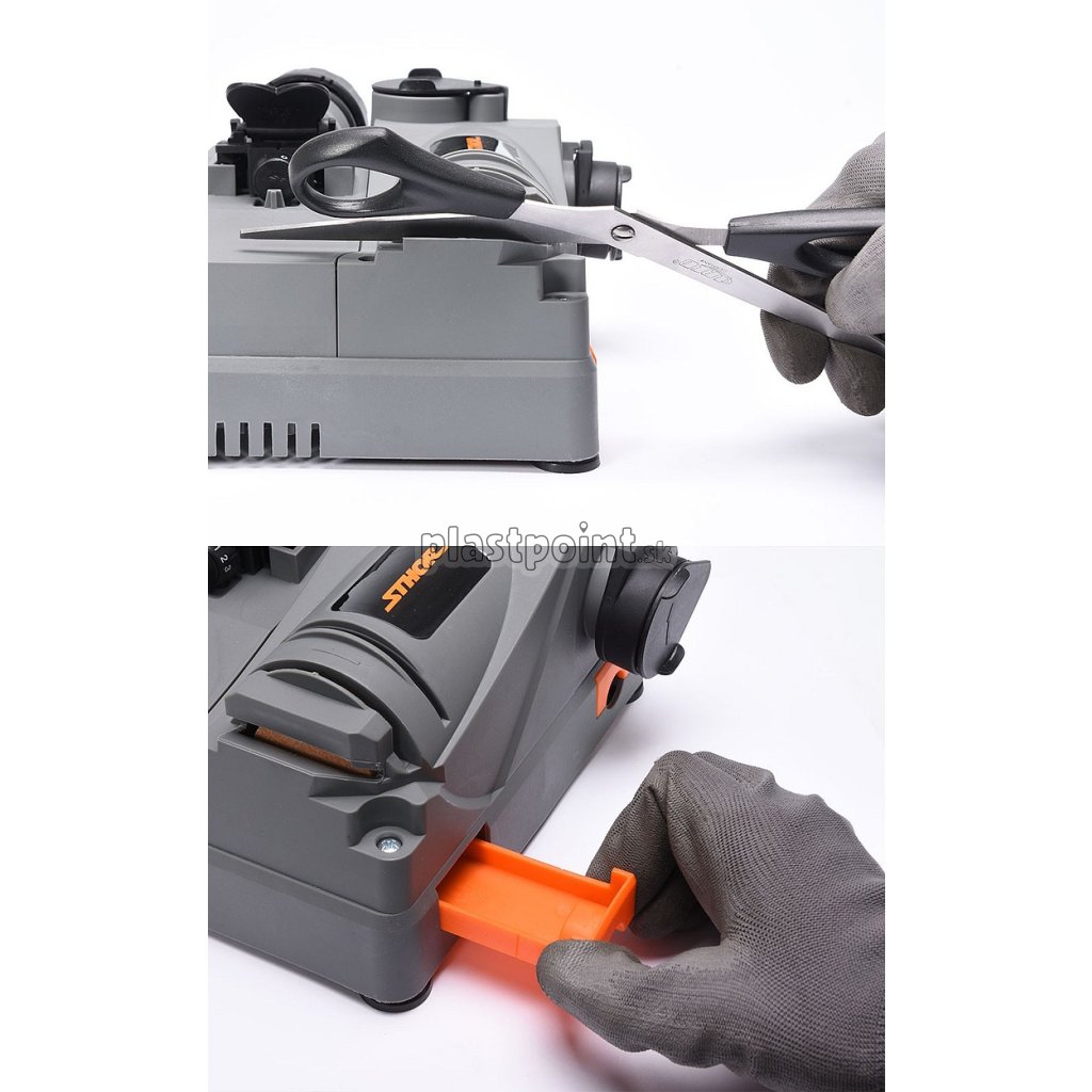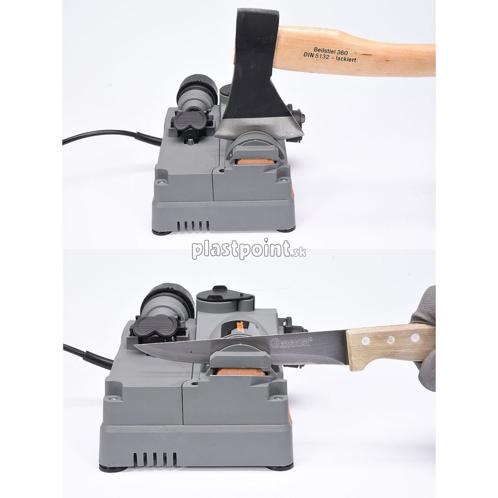 Tento výkonný univerzálny ostrič umožňuje brúsenie ostria vrtákov, ale aj nožov, nožníc, čepelí sekier a sekáčov pod podmienkou, že všetky uvedené produkty sú vyrobené z ocele. Ostrič nie je určený na ostrenie keramických materiálov.