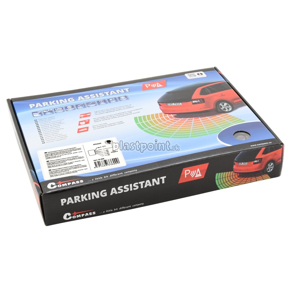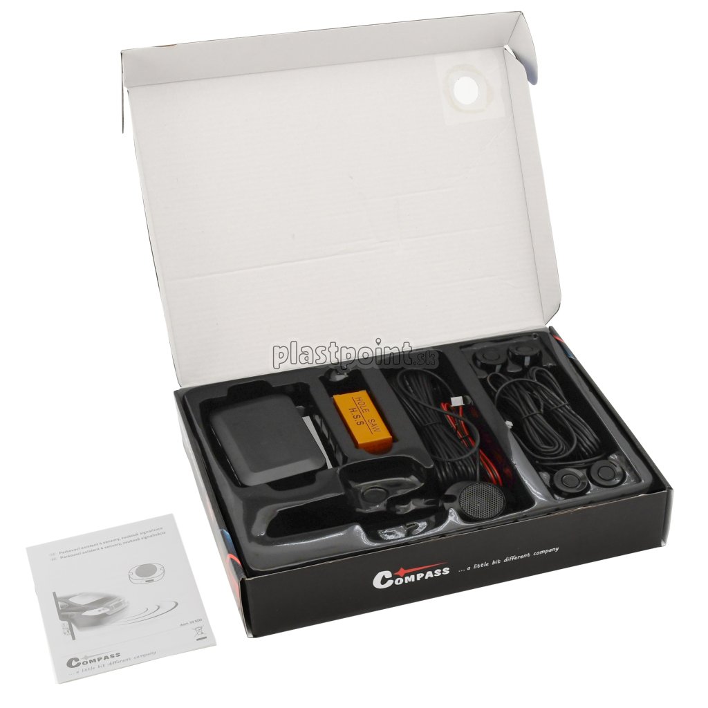 Balenie obsahuje reproduktor, riadiacu jednotku, 4 senzory pre montáž do zadného nárazníka, zodpovedajúcu kabeláž a vrták zodpovedajúceho priemeru.