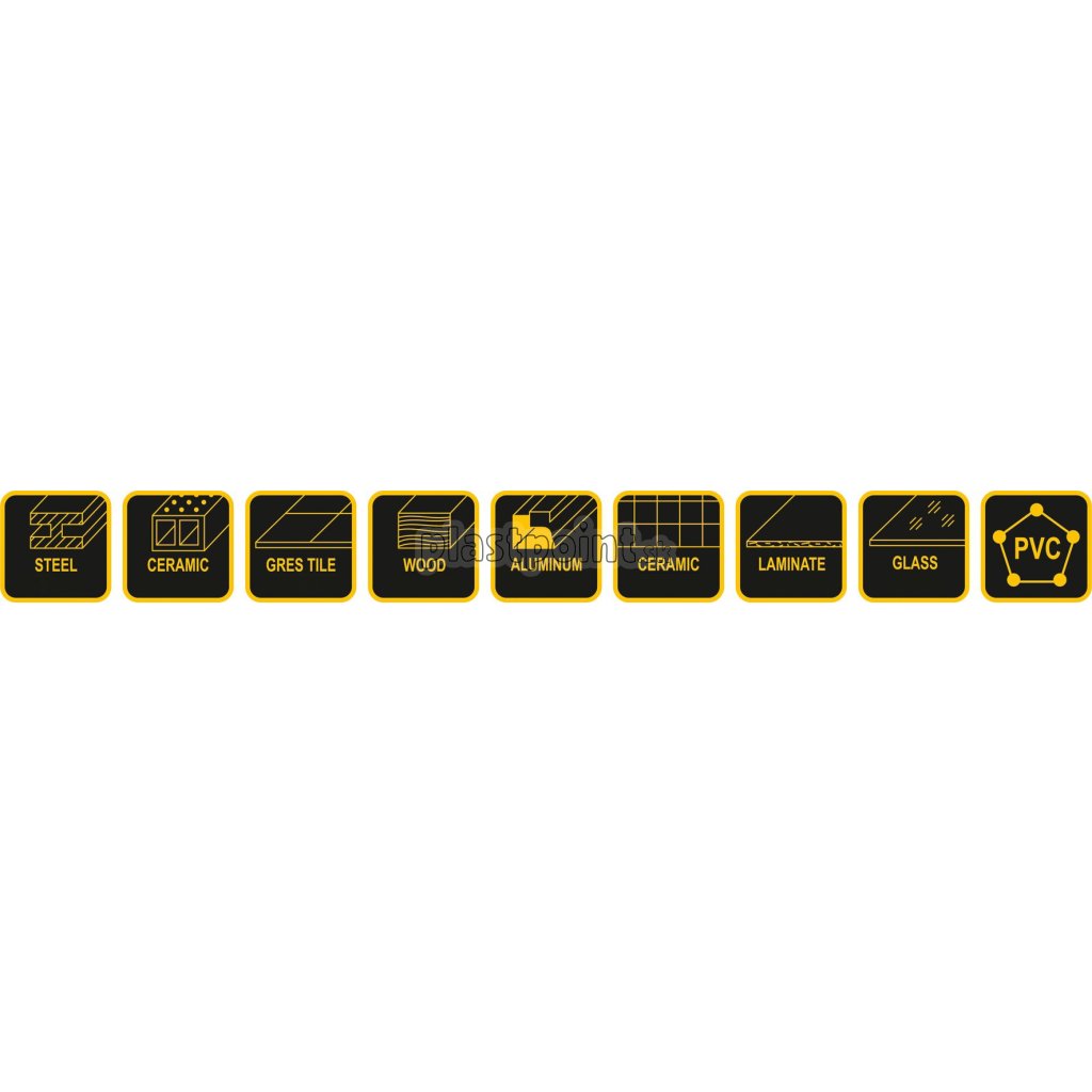Spodná časť rukoväte je vybavená špeciálnym výrezom na rozbitie skla alebo dlaždíc.