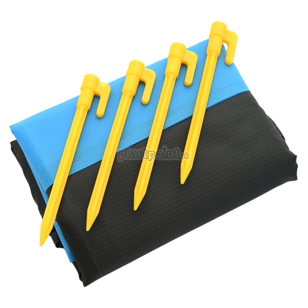 Podložka je vyrobená z kvalitného materiálu RIPSTOP 210T, ktorý zaisťuje vynikajúcu odolnosť. Rozložená deka má rozmery 200 x 200 cm av rohoch je opatrená očkami.