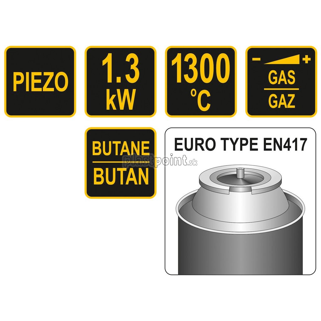 Plynový horák s PIEZO zapaľovaním.