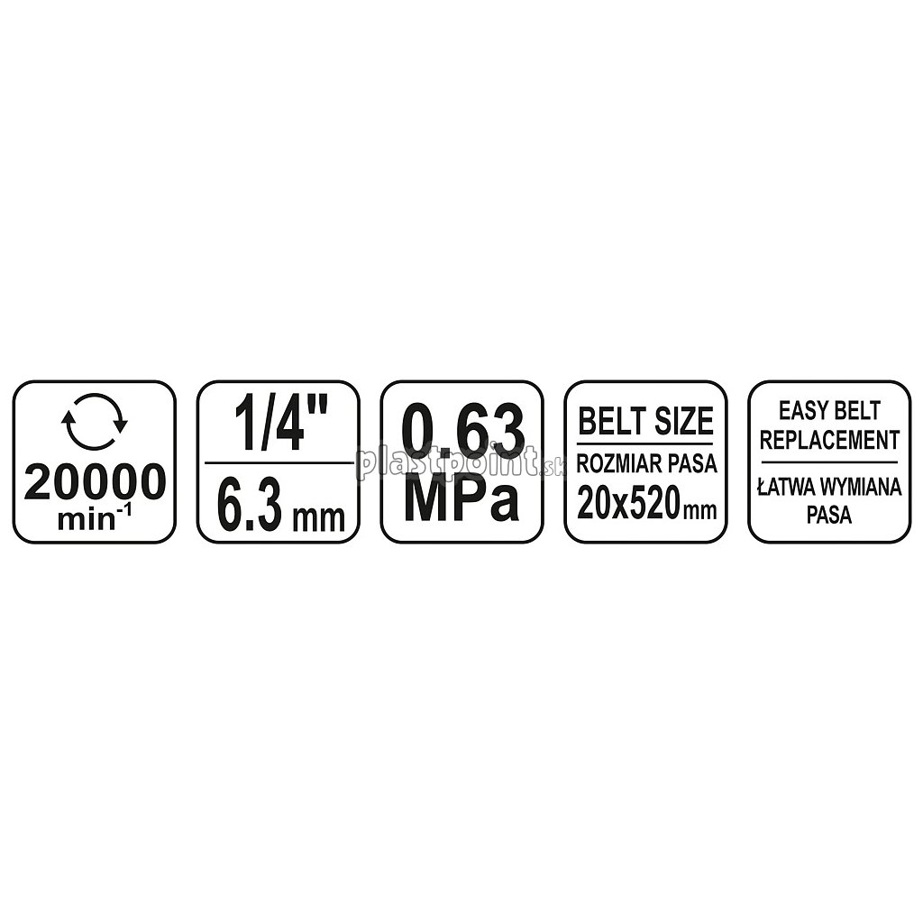 Brúska je vybavená spojkou 1/4' pre pripojenie k pneumatike. colspan="2">Technické údaje
