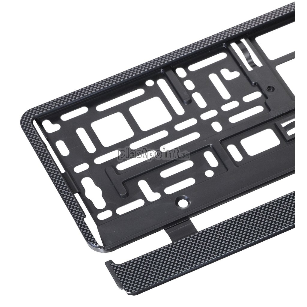 Návod na montáž (ak je súčasťou podložky). Namontujte podložku na vozidlo pomocou vhodných skrutiek. ŠPZ nasuňte do spodnej strany podložky. Spodnú lištu pomocou kaštieľa nacvaknite do podložky tak, aby pevne držala ŠPZ v podložke. (carbon)veľkosť 52,5 x 13 x 1 cm pre veľkosť ŠPZ / EČ 520 x 110 mm