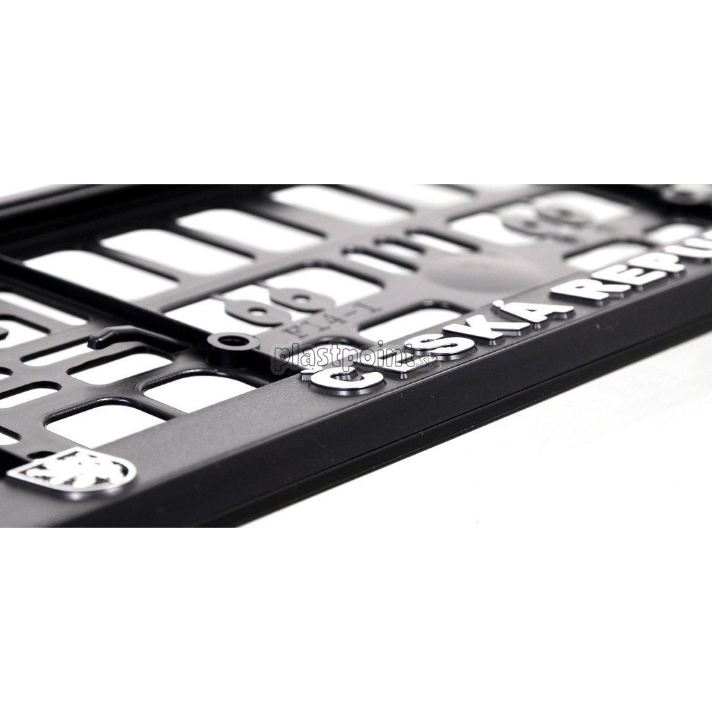 Podložka je opatrená plastickým 3D nápisom Česká republika a znaky leva, ktorých povrch je chrómovaný.