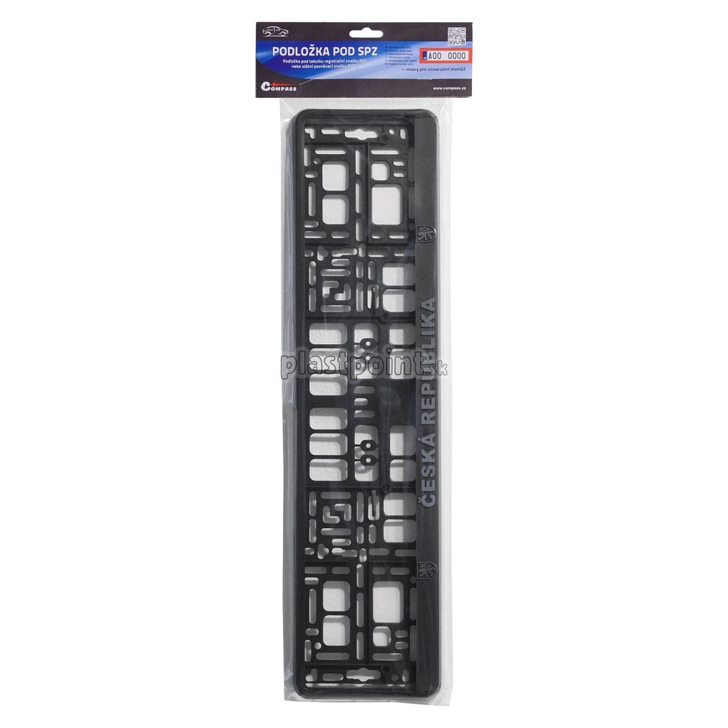 Plastová podložka pod tabuľku registračnej značky (RZ) alebo štátnej poznávacej značky (SPZ) bežných rozmerov.
