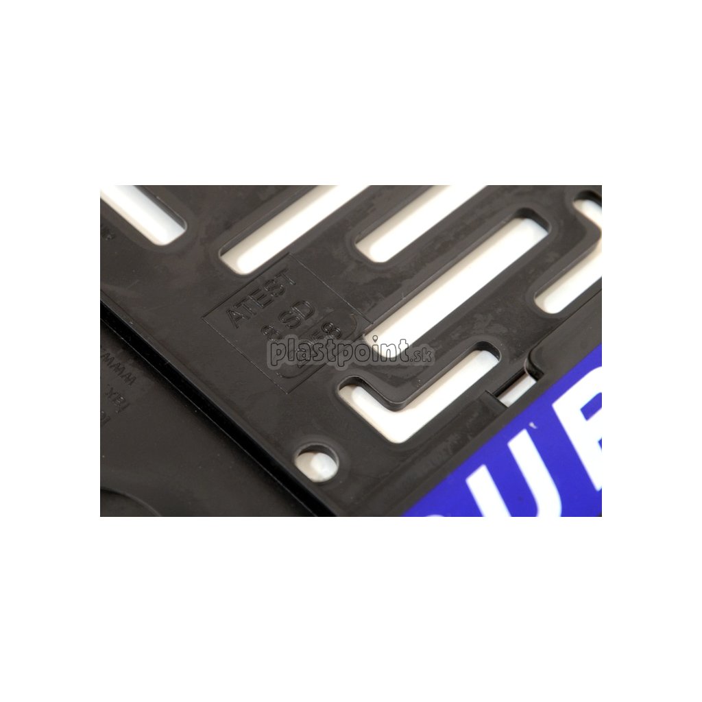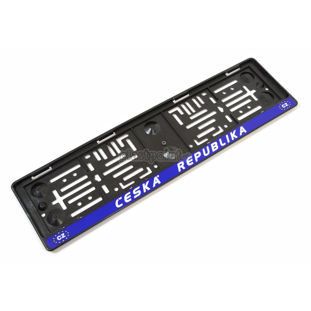 Plastová podložka pod štátnu poznávaciu značku alebo tabuľku registračnej značky, otvory pre univerzálnu montáž. S nápisom Česká republika v štýle EÚ.