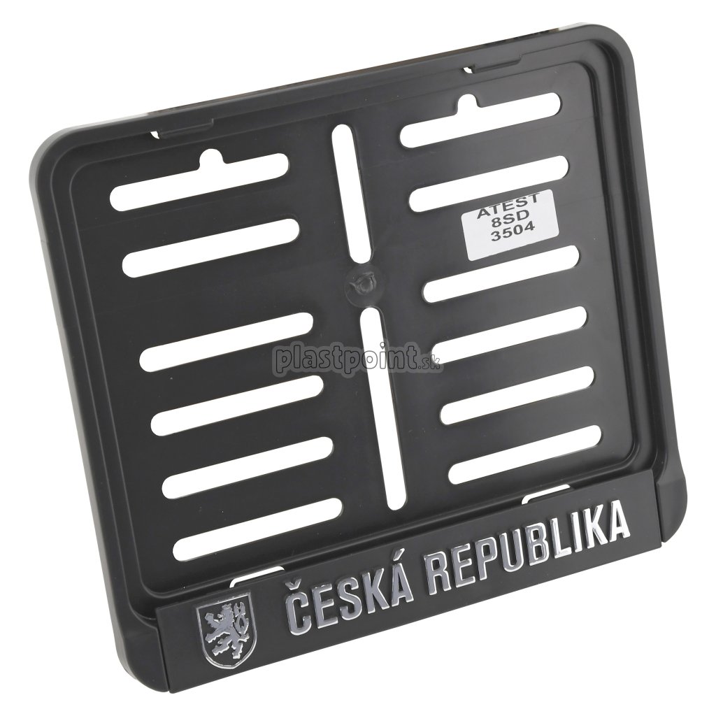 Podložka je opatrená plastickým 3D emblémom leva a nápisom Slovenská republika s chrómovanou povrchovou úpravou. radom montážnych otvorov, vďaka ktorým je jej upevnenie naozaj univerzálne.