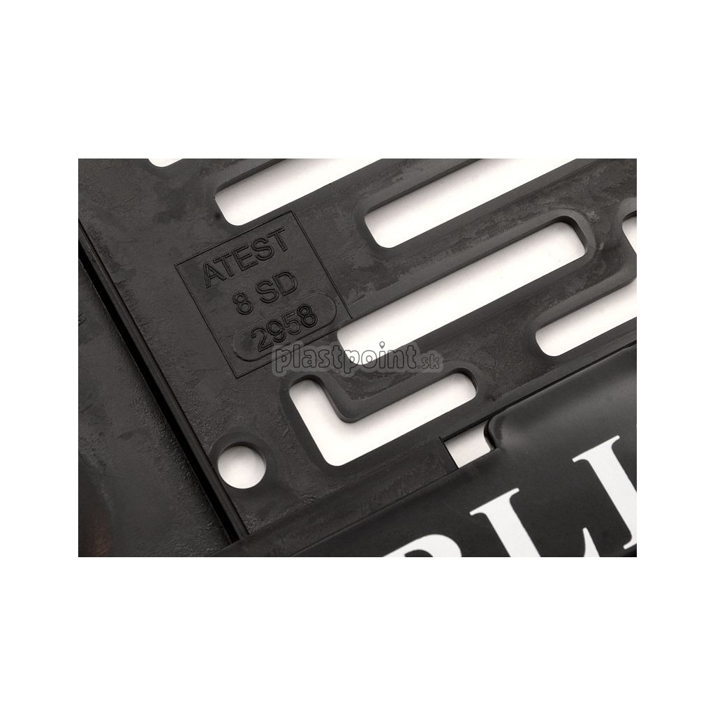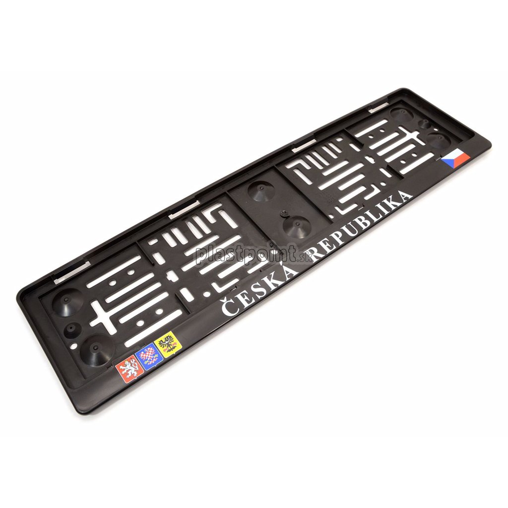 Plastová podložka pod registračnú značku vozidla (štátnu poznávaciu značku), otvory pre univerzálnu montáž. S erby a s nápisom Česká republika.