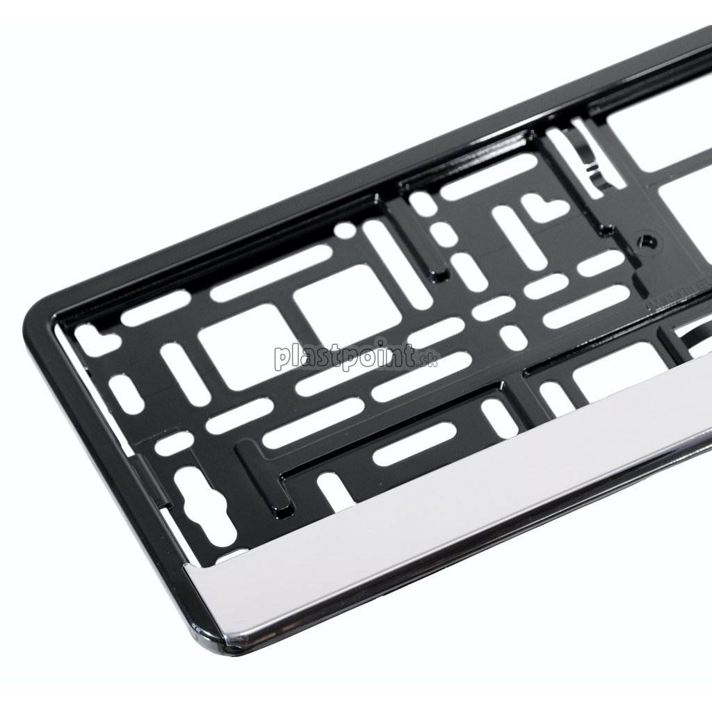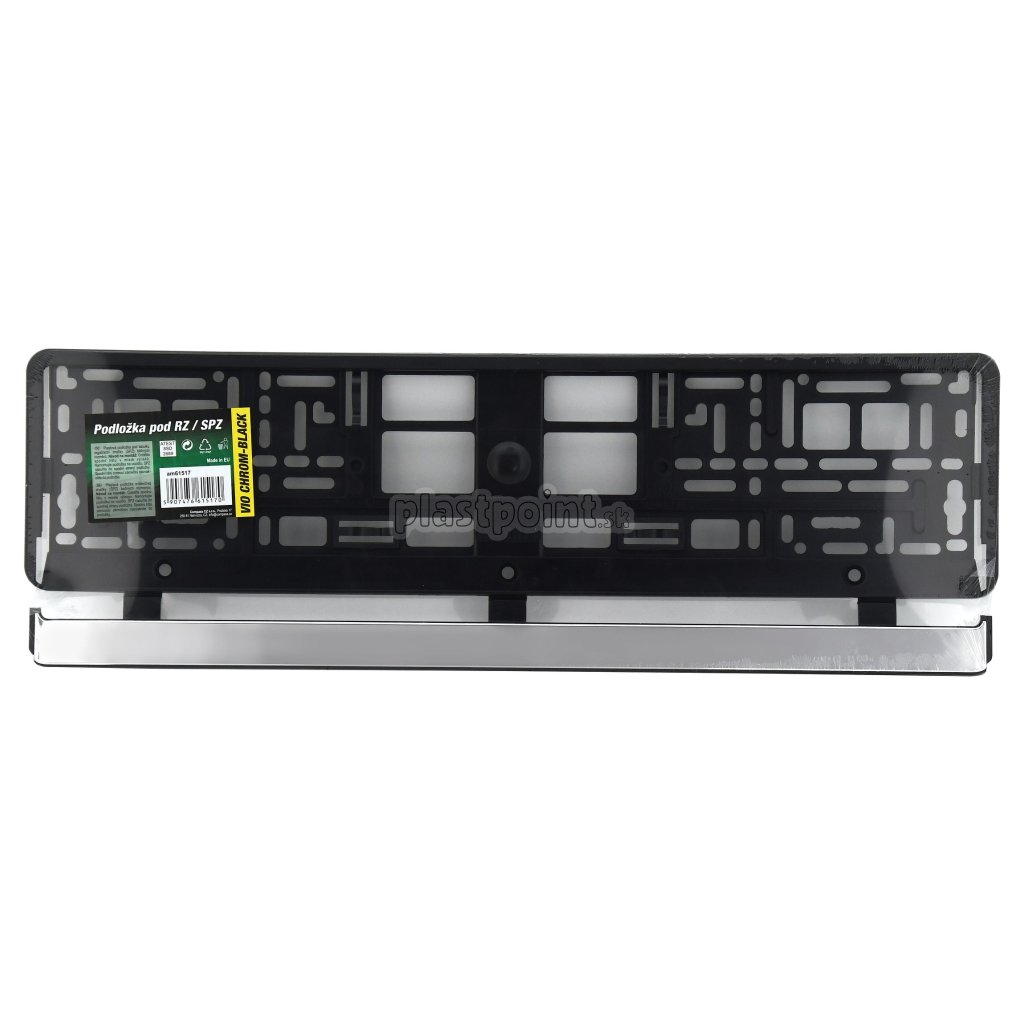 Plastová podložka pod štátnu poznávaciu značku alebo tabuľku registračnej značky, otvory pre univerzálnu montáž. Povrch čierna v kombinácii so spodnou lištou Chróm.