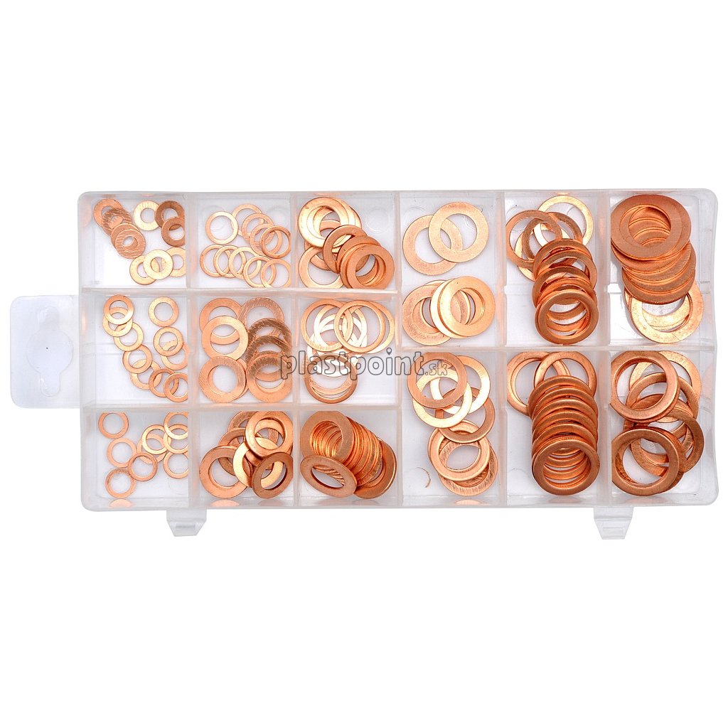 Sada 150 ks tesniacich podložiek zhotovených z medi.