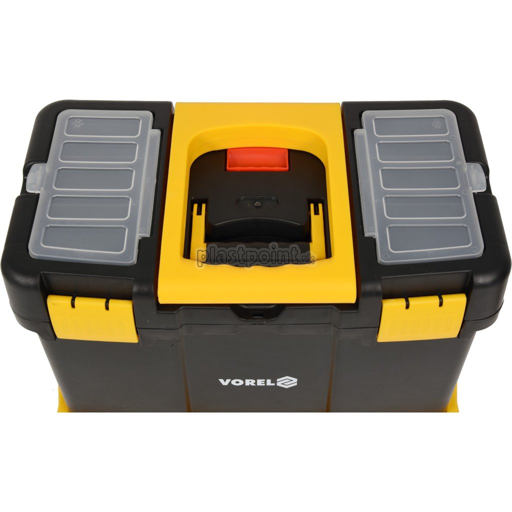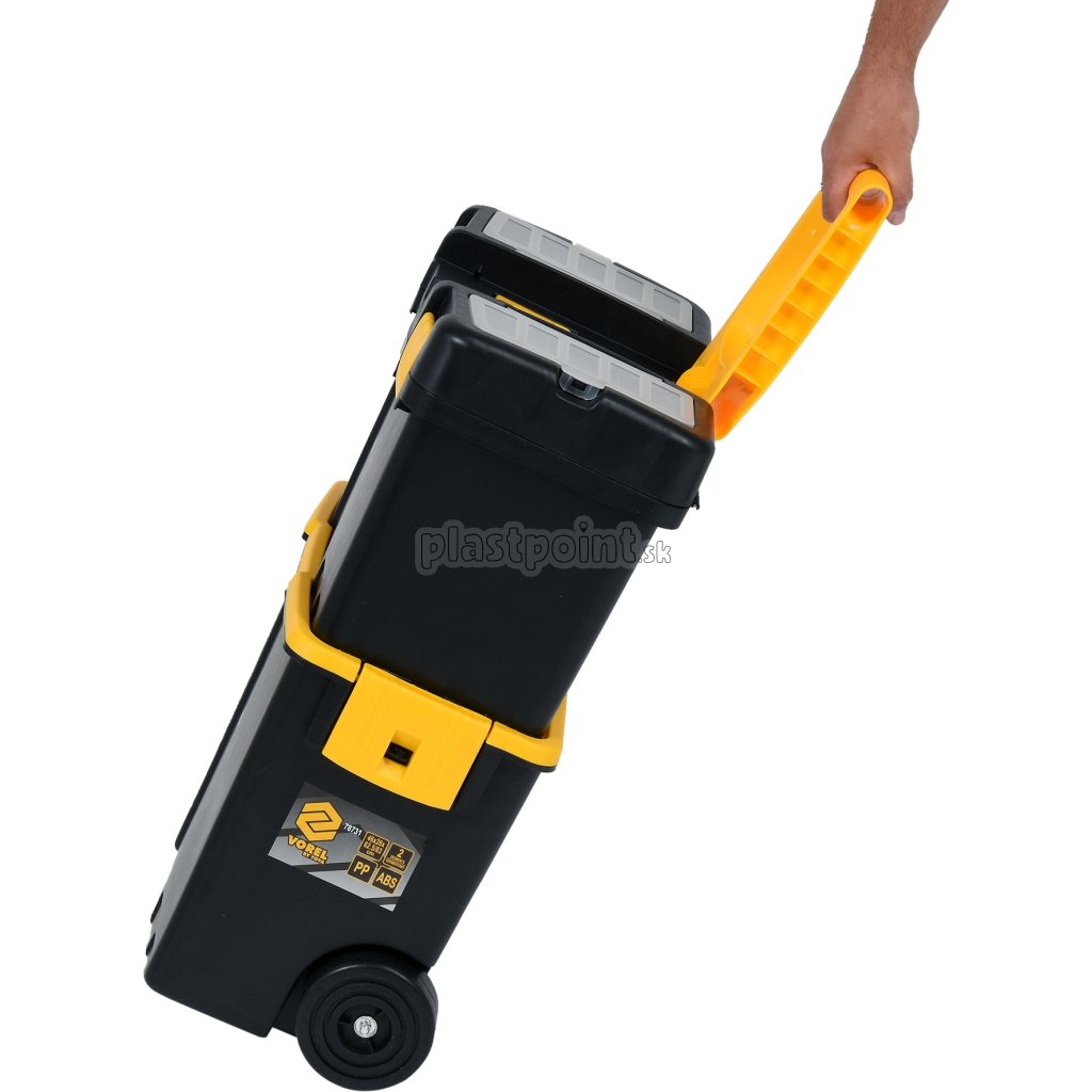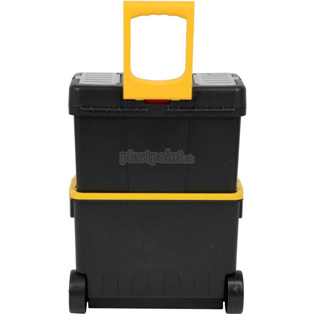 Dvojdielny mobilný vozík na uloženie náradia a príslušenstva.