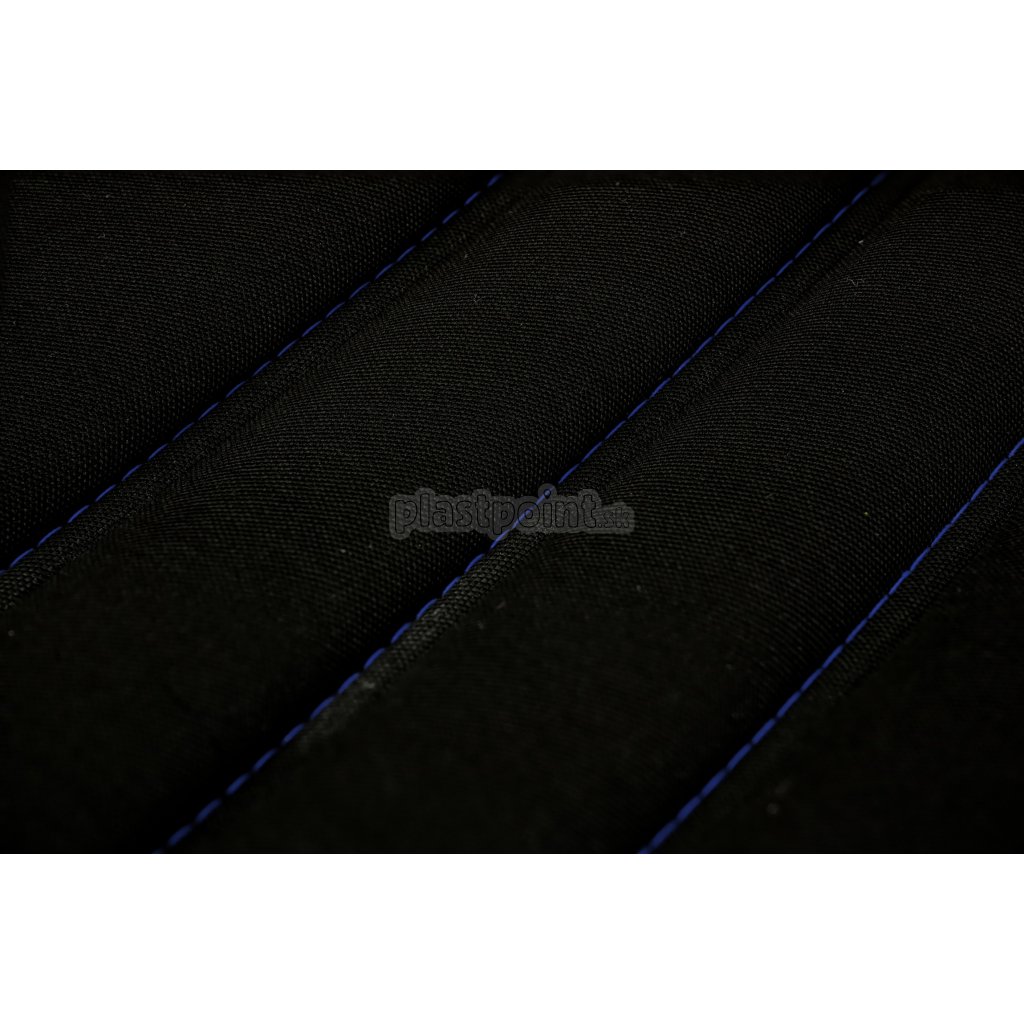 Komfortný poťah sedadla s atraktívnym lesklým modrým prvkom a modrým prešívaním.