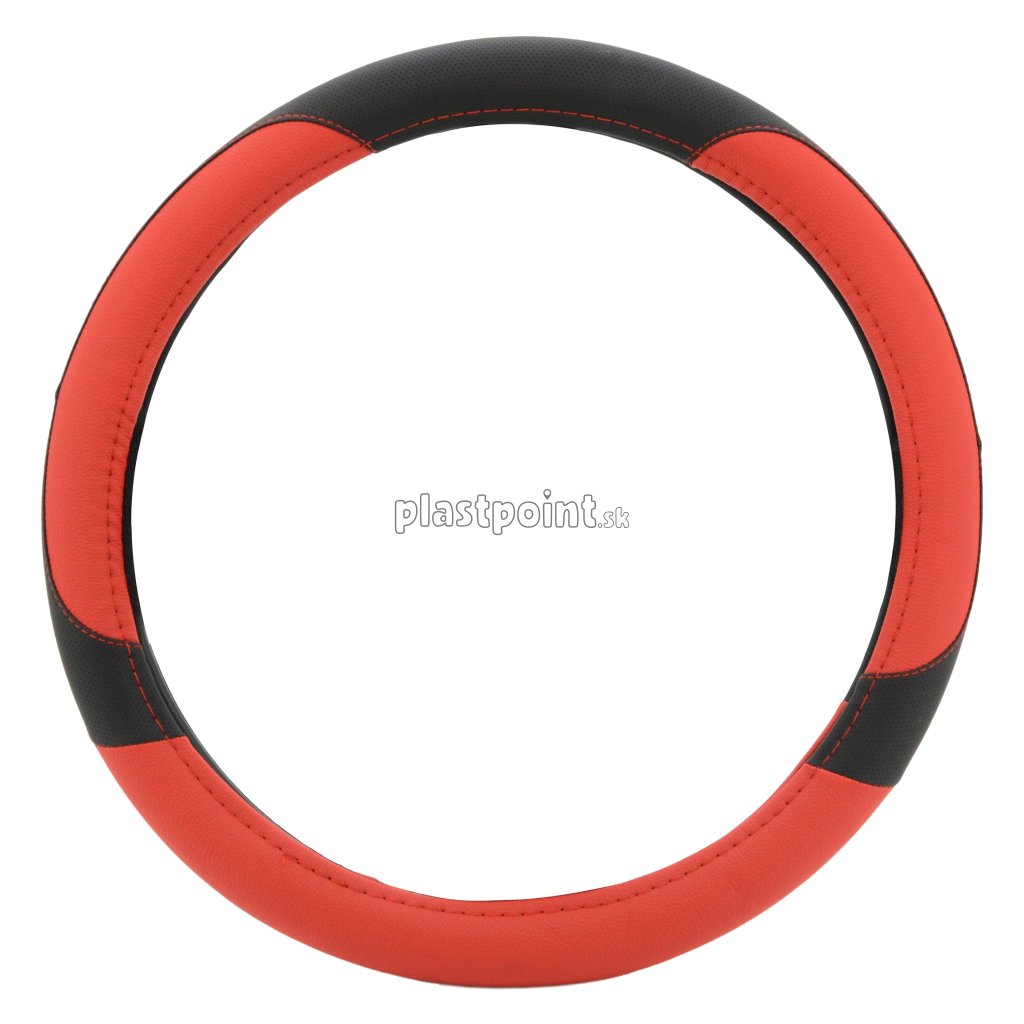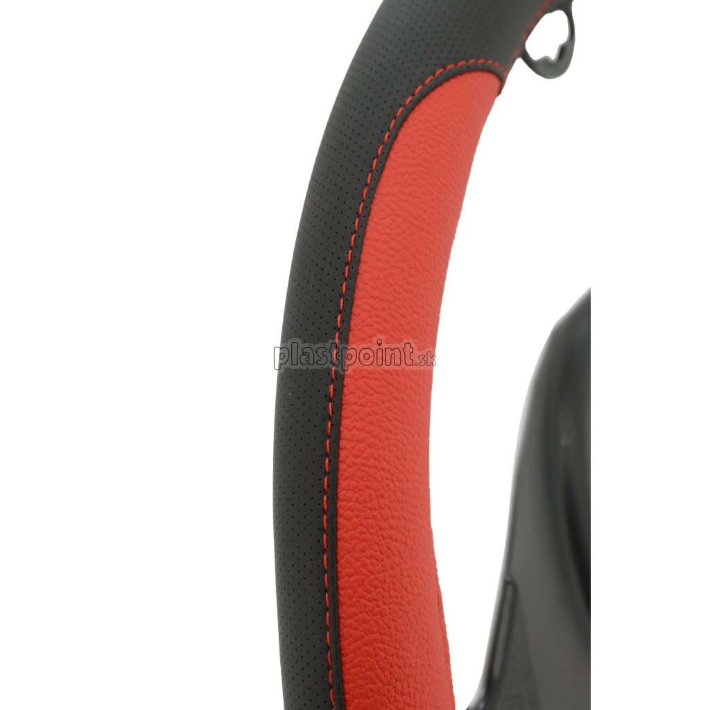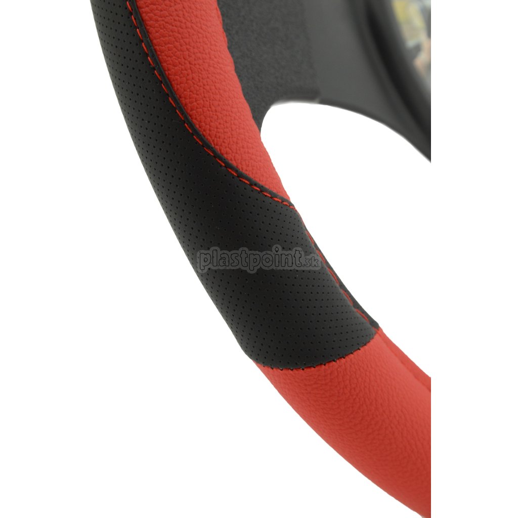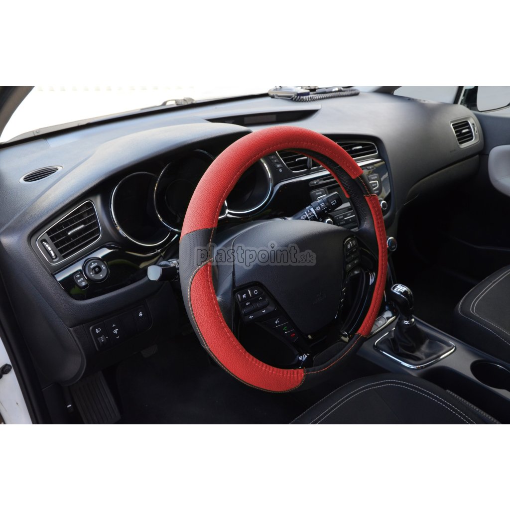 Štýlový poťah volantu s unikátnym prevedením, v pastelovočervenej farbe s čiernym podkladom a pastelovočerveným prešívaním.