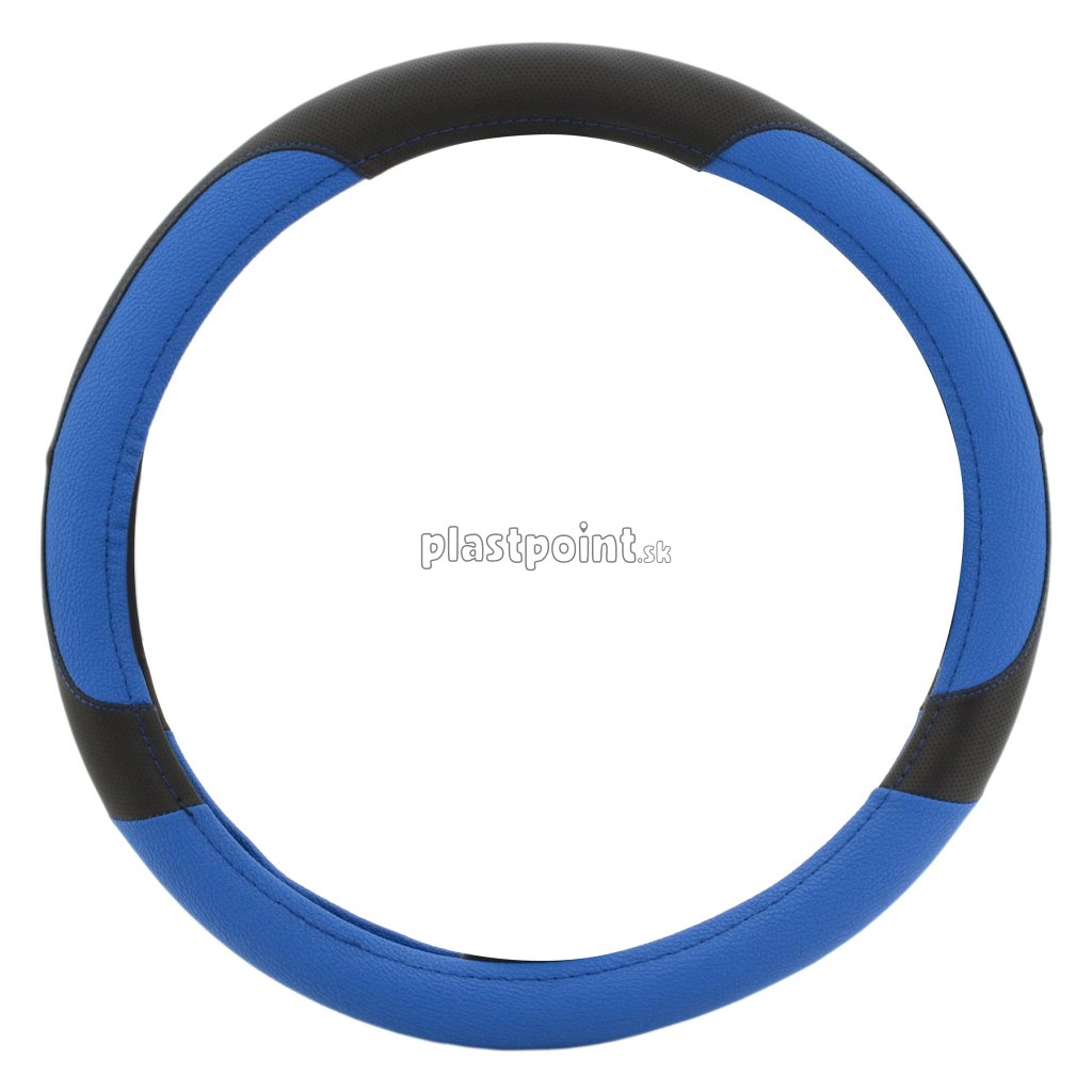 Štýlový poťah volantu s unikátnym prevedením, v pastelovo modrej farbe s čiernym podkladom a pastelovo modrým prešívaním.