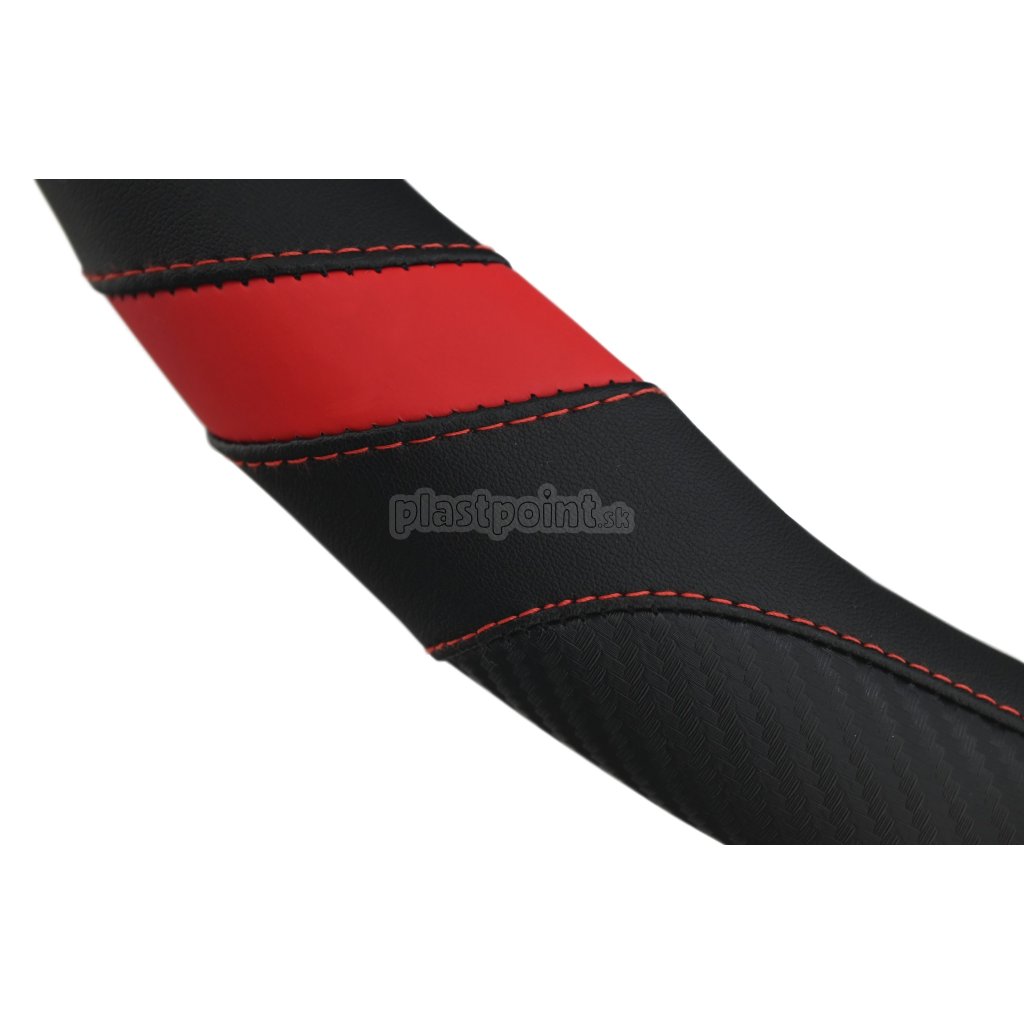 Poťah je príjemný na dotyk, ergonomicky tvarovaný, s imitáciou karbónu na bokoch pre uľahčený úchop.