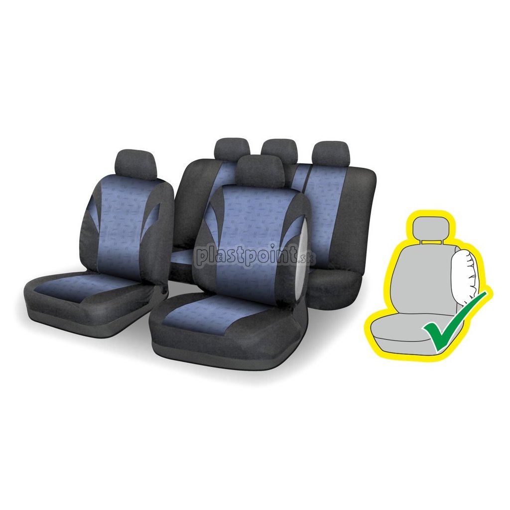 Poťahy sedadiel sada 9ks POLY modré AIRBAG