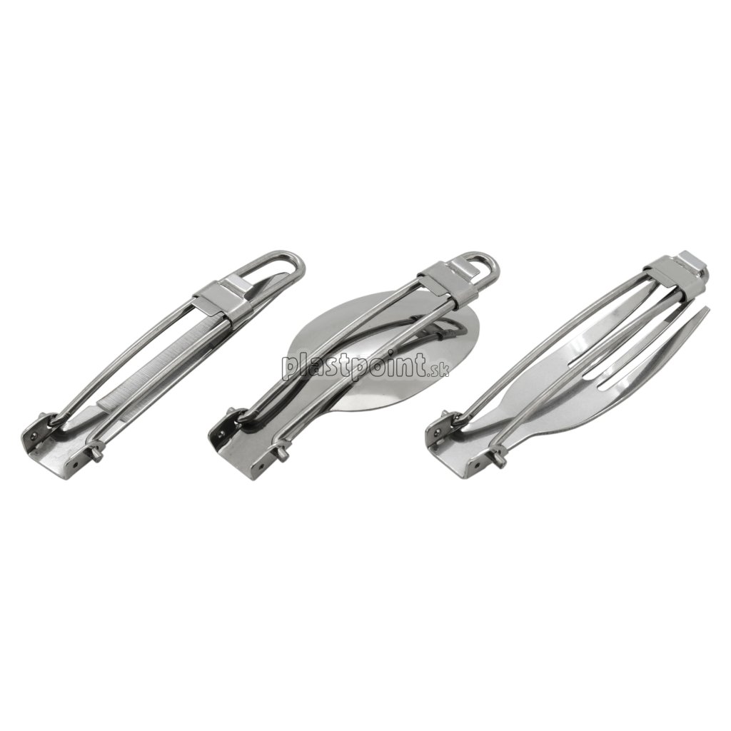 Sada skladacích, oceľových príborov v textilnom púzdre.