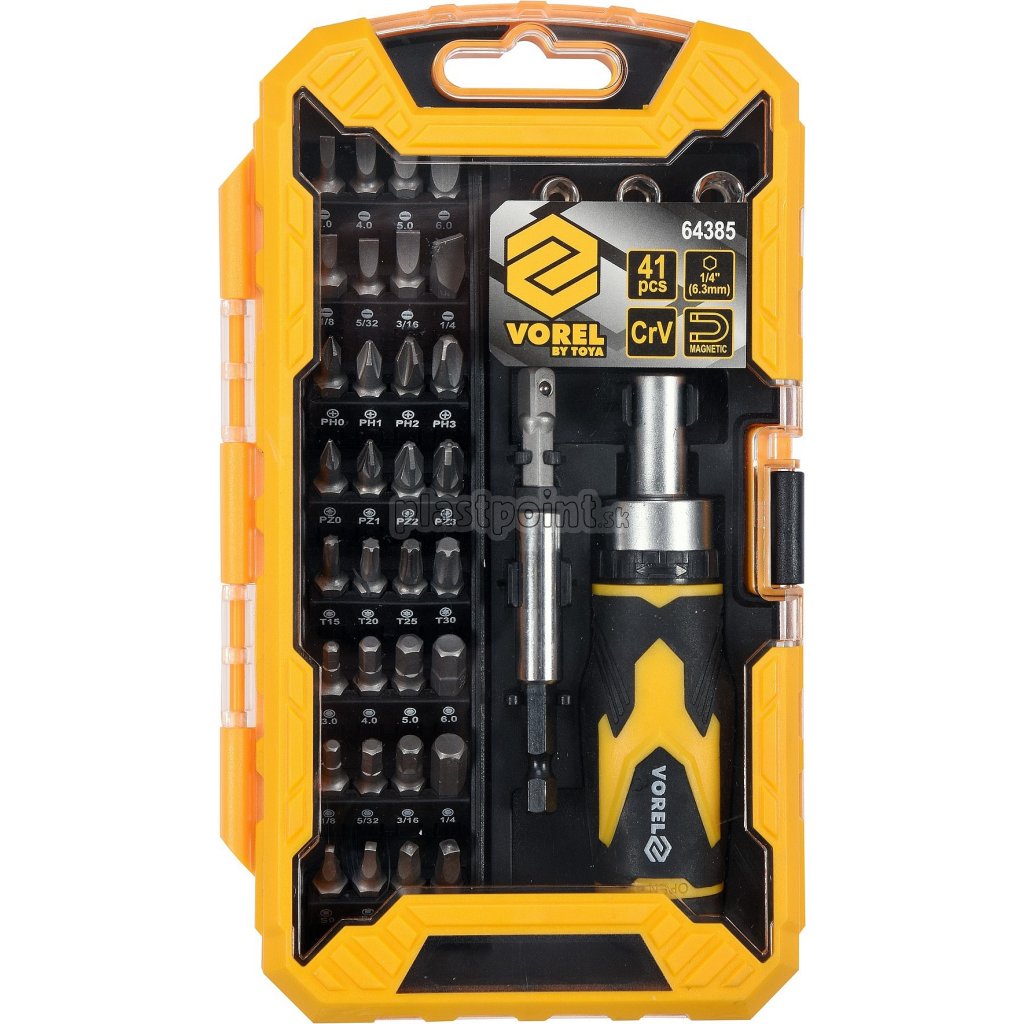 Náradie je precízne spracované z CrV ocele a jednotlivé bity 1/4"(6,3 mm) sú magnetické, čím uľahčujú prácu so súčiastkami. Byteľné telo račňového skrutkovača je duté a po odskrutkovaní zadnej časti je prístupné napr. na odkladanie drobných súčiastok. 6; 7; 8; 9; 10 mm (20 mm)