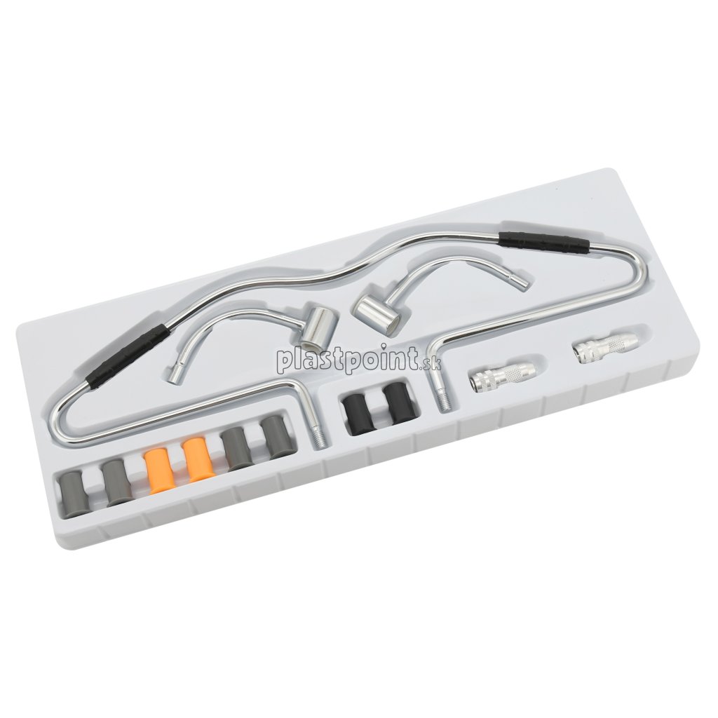 K celokovovému, pochrómovanému ramienku je priložených 5x párov vymedzovacích adaptérov, určených pre rôzne priemery držiakov hlavových opierok.