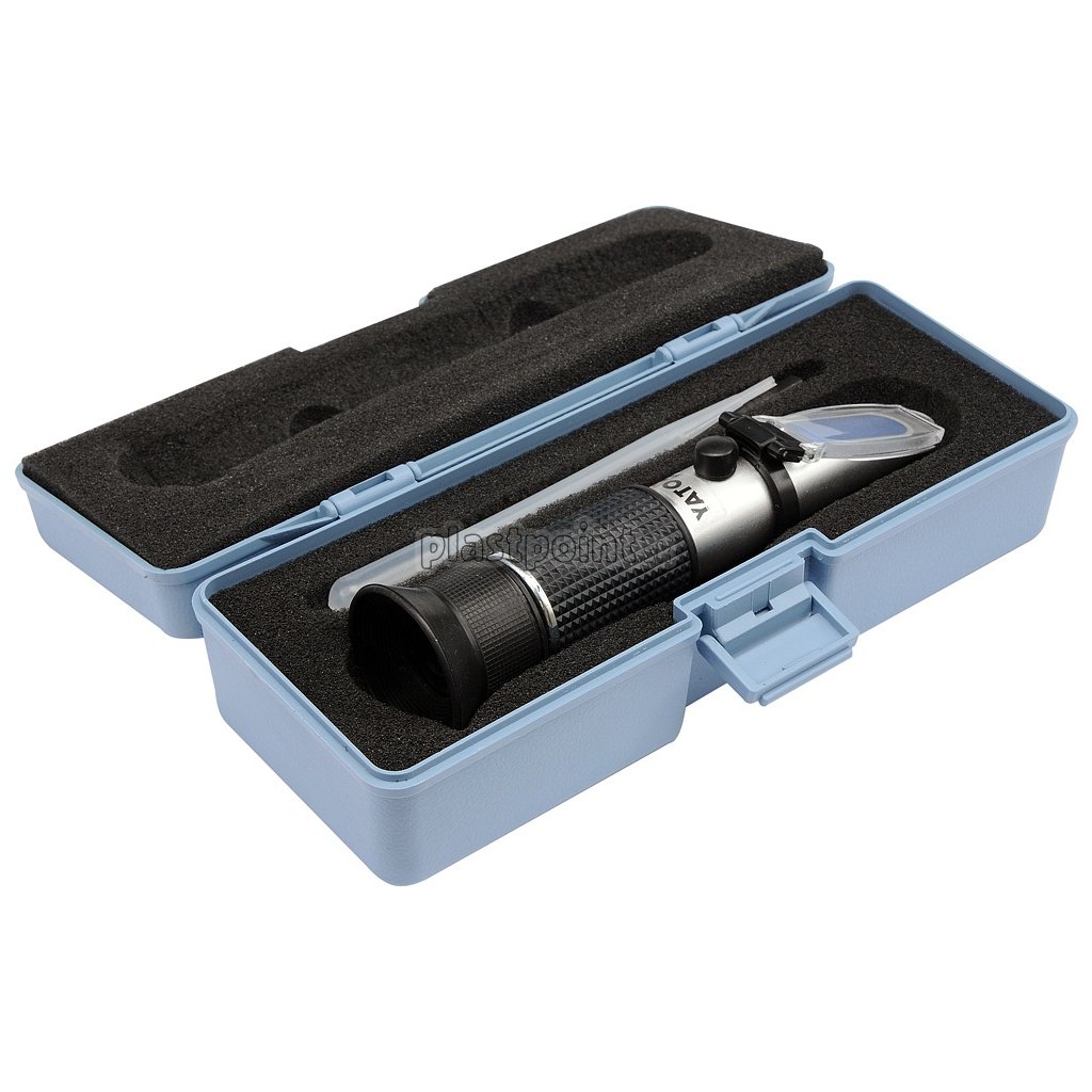 Refraktometer je zariadenie, pomocou ktorého je možné stanoviť fyzikálne vlastnosti kvapalín meraním ich refrakčného indexu na rozhraní prostredia.