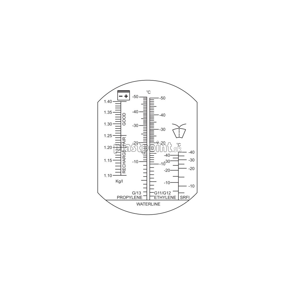 Refraktometrom je možné určiť stupeň nabitia akumulátora, teplotu tuhnutia chladiacich kvapalín na báze propylénglykolu alebo etylalkoholu ostrekovačov.