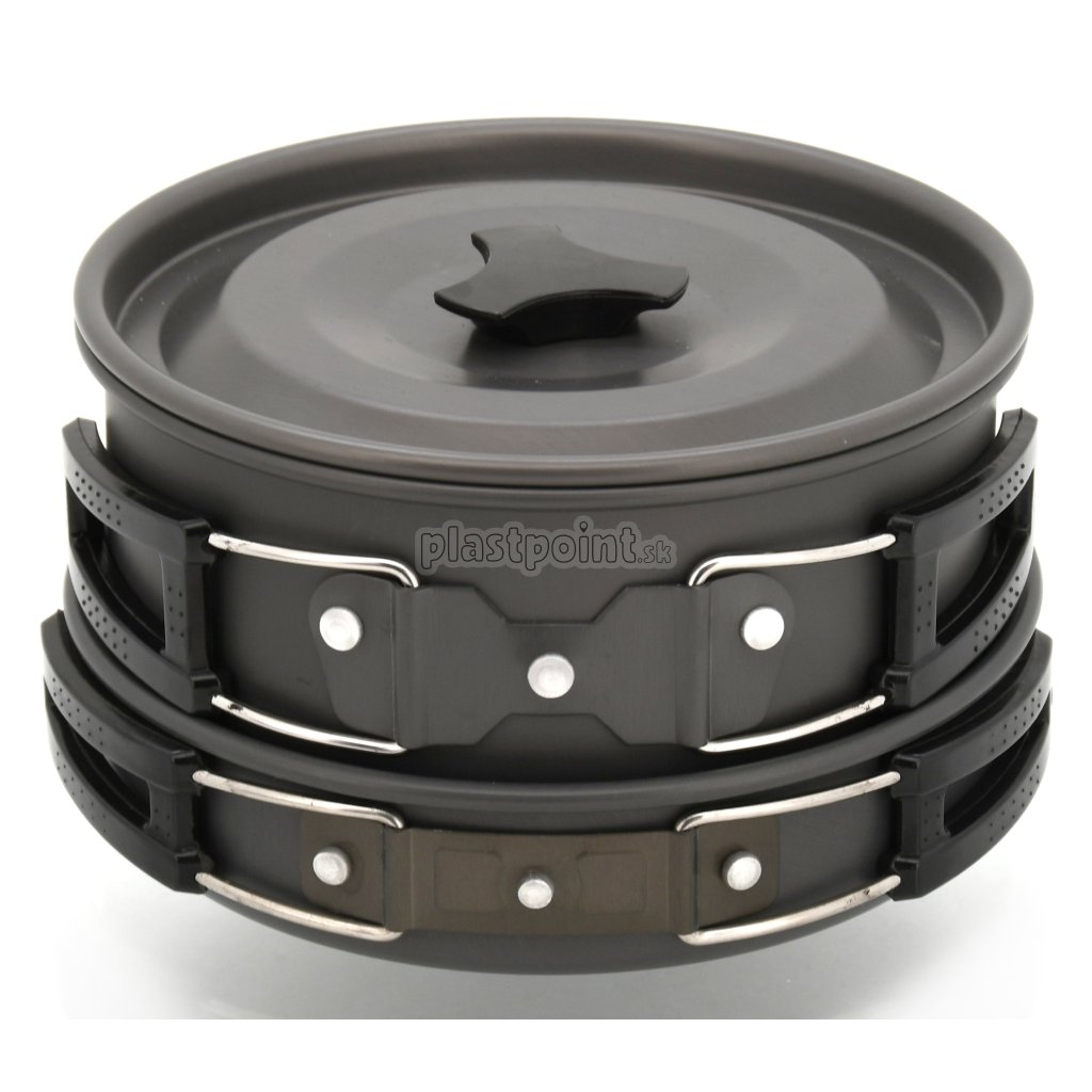 Sada je tvorená panvičkou 18 x 4 cm (0,7 l) kotlíkom 17 x 9 cm (2 l) kanvicou 15 x 7,5 cm (1,1 l) a vekom priemeru 17 cm. Všetko vybavenie je opatrené sklápacím držiakom, zakončený plastovou rukoväťou pre uľahčenú manipuláciu.